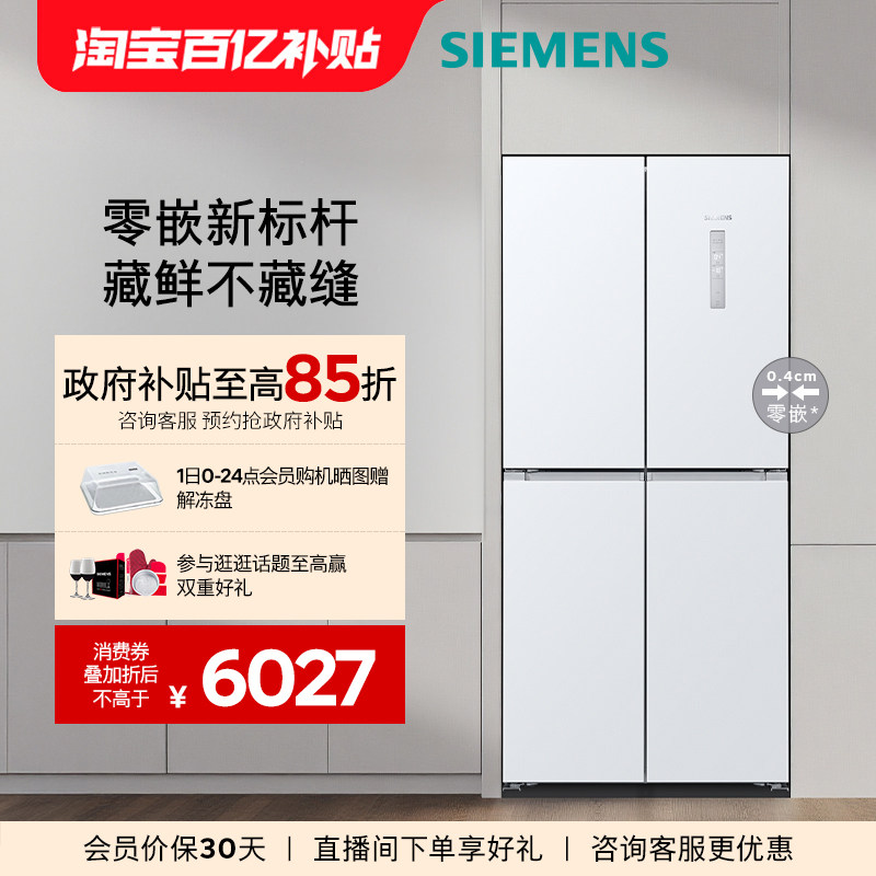 【零嵌升级】西门子558L无界铂金系列一级能效大容量十字对开冰箱