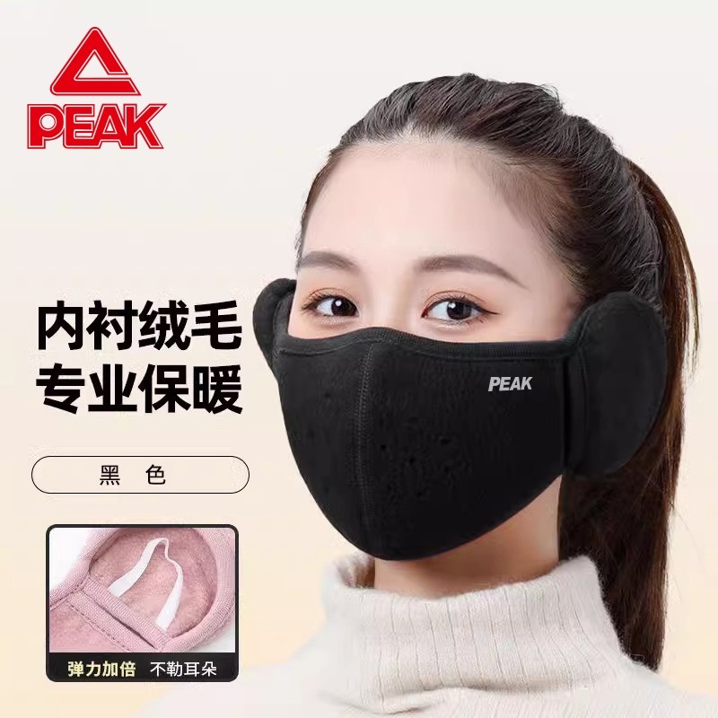 匹克冬季新款保暖耳罩女加绒口罩防风护耳骑行耳朵耳包防冻黑色