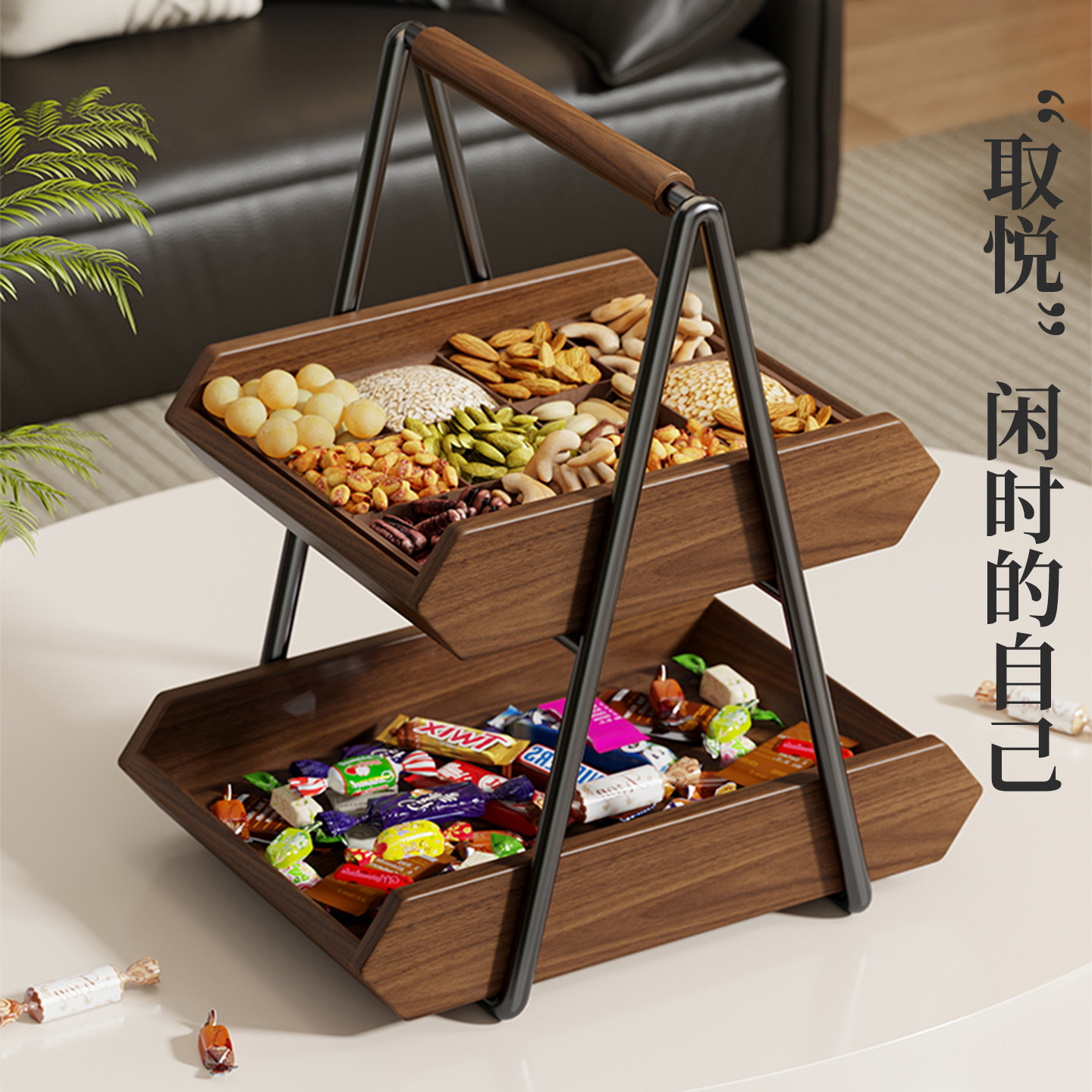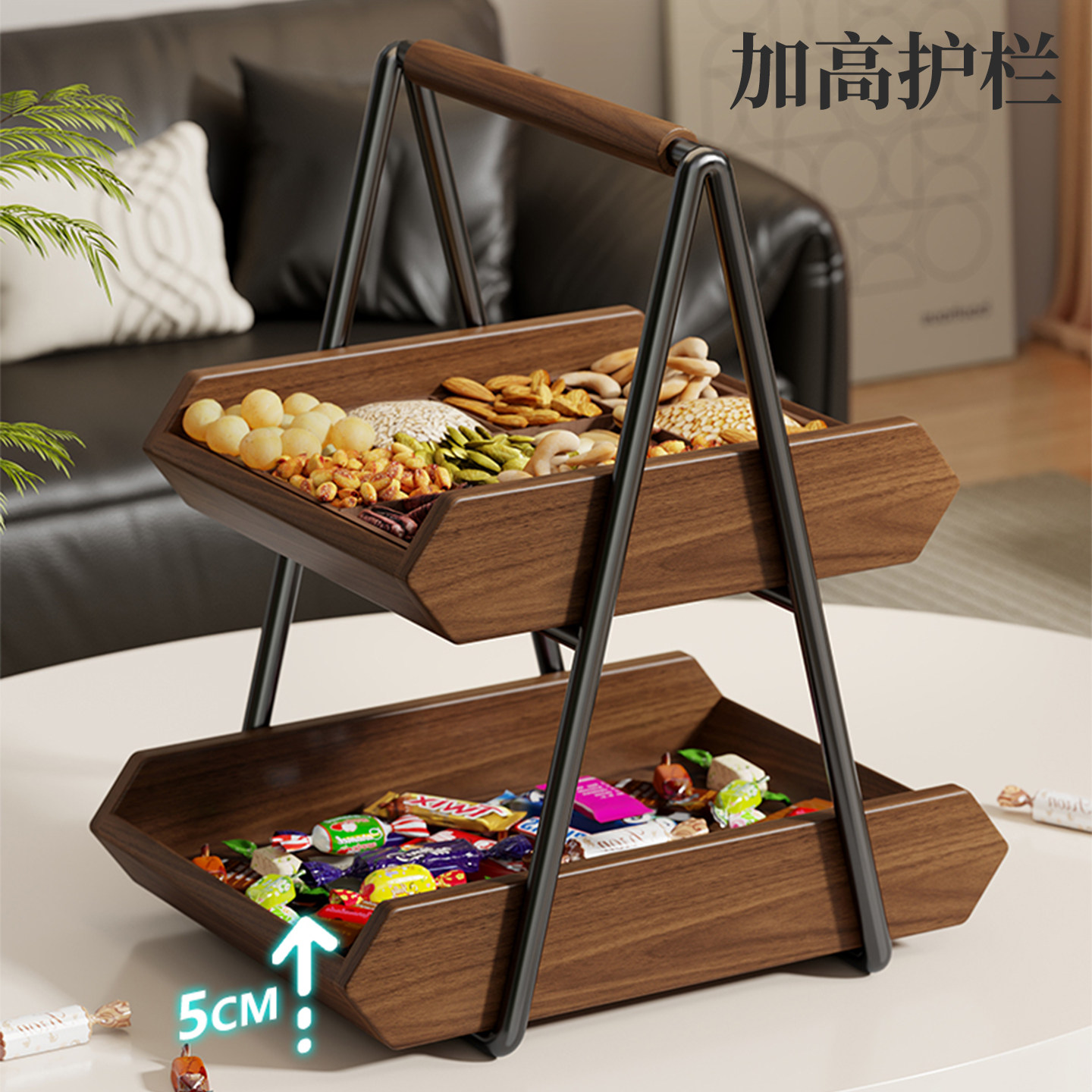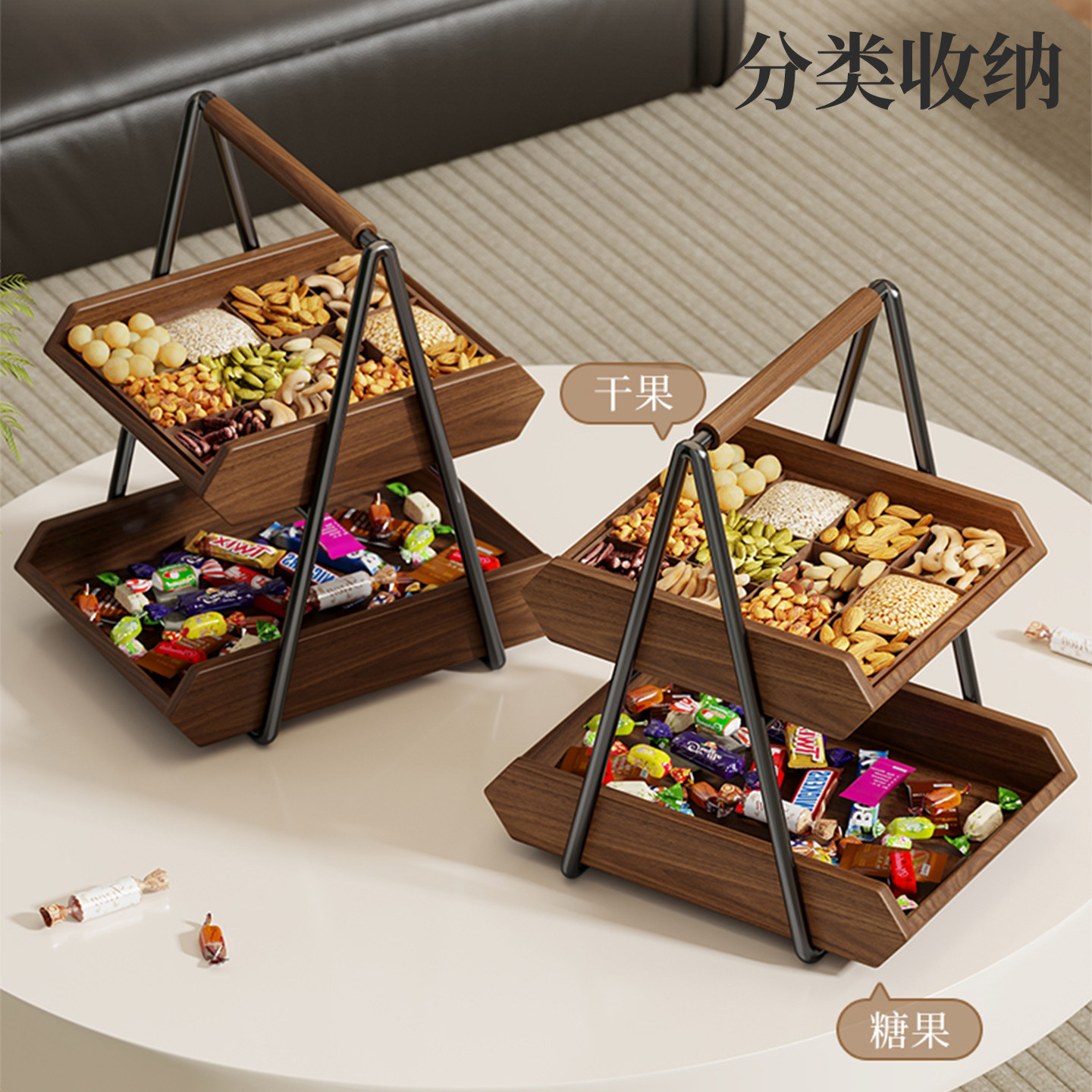 实木水果盘家用客厅茶几置物架零食糖果摆放盘台面分类干果放置架