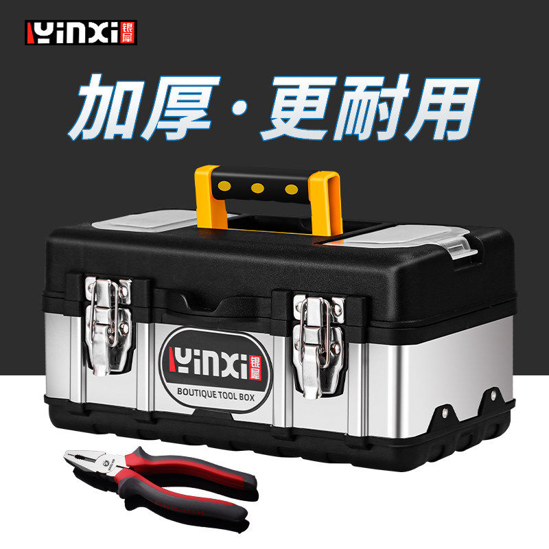 五金工具箱家用多功能收纳箱大全车载塑料手提电工不锈钢盒小带锁