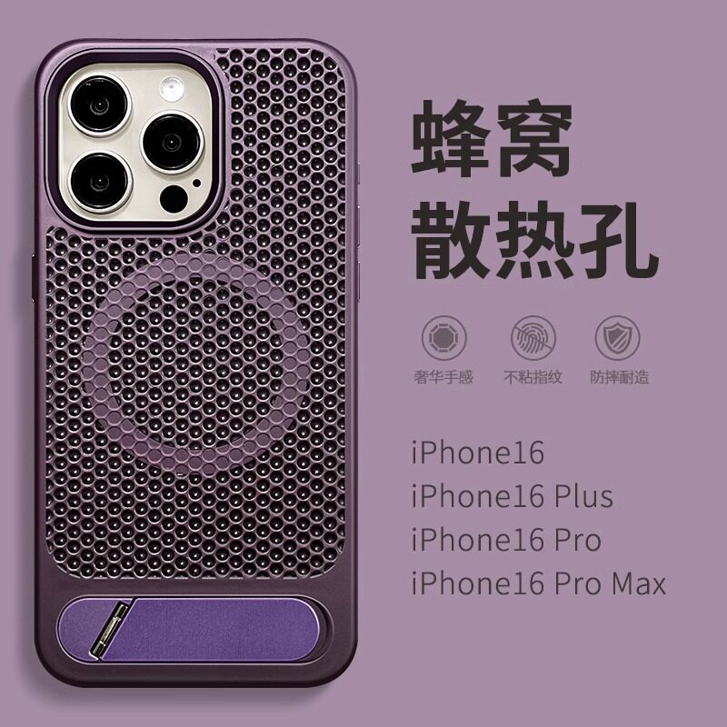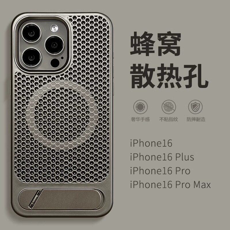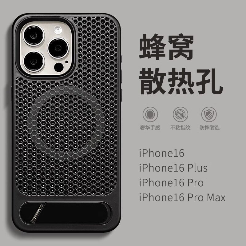 适用苹果16promax手机壳iphone15新款磁吸16e超薄保护套14pm防摔plus全包13散热17隐形支架MagSafe女夏季硬壳