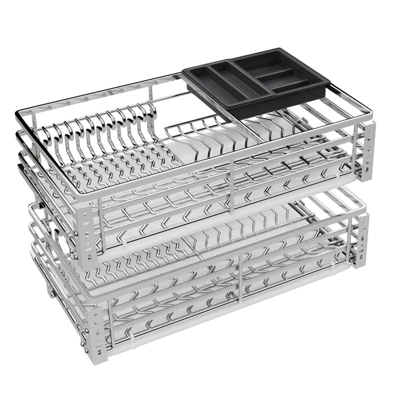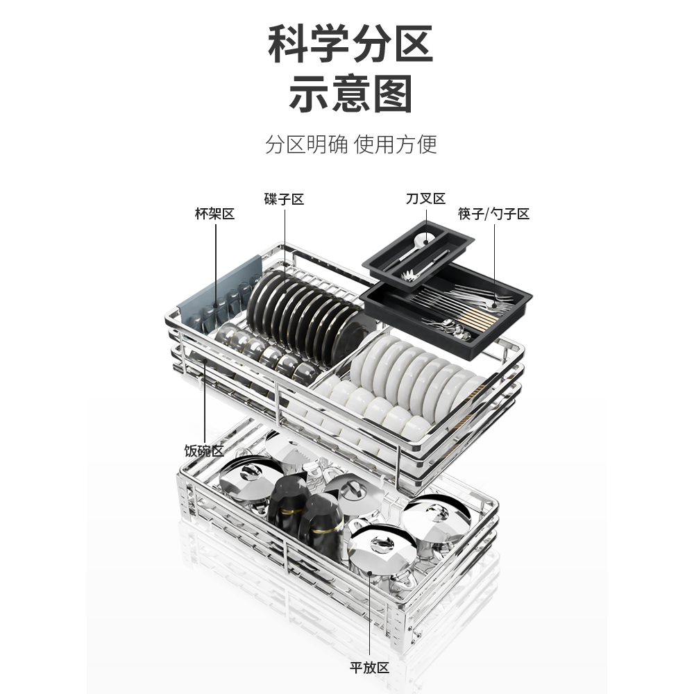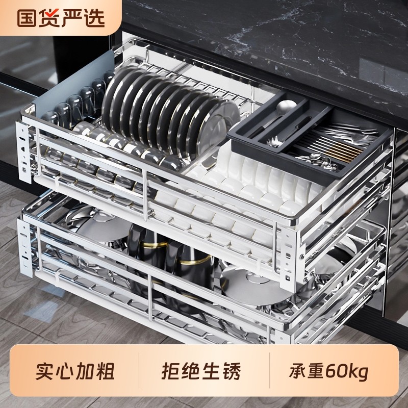 亿升隆拉篮厨房橱柜304不锈钢双层抽屉式碗架碗碟篮碗柜厨柜碗篮