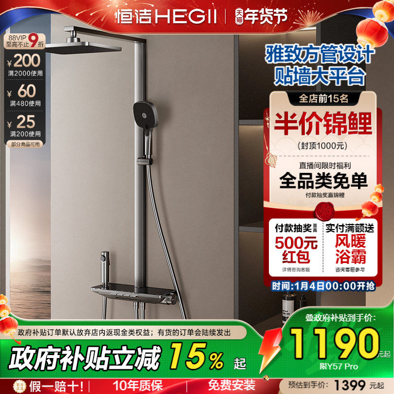 恒洁钢琴按键方管花洒套装淋浴器淋浴贴墙平台浴室卫生间龙头Y57