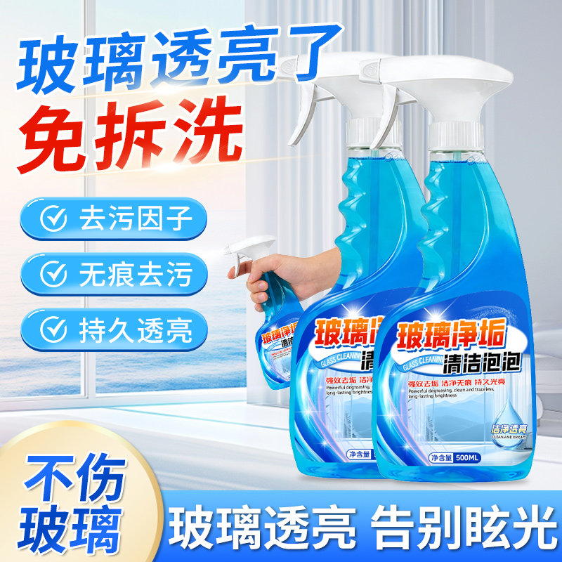 玻璃清洁剂家用擦窗玻璃水强力去污垢保洁专用浴室水垢渍镜子窗户