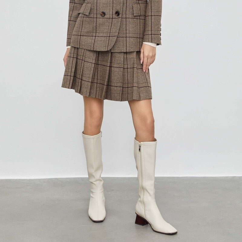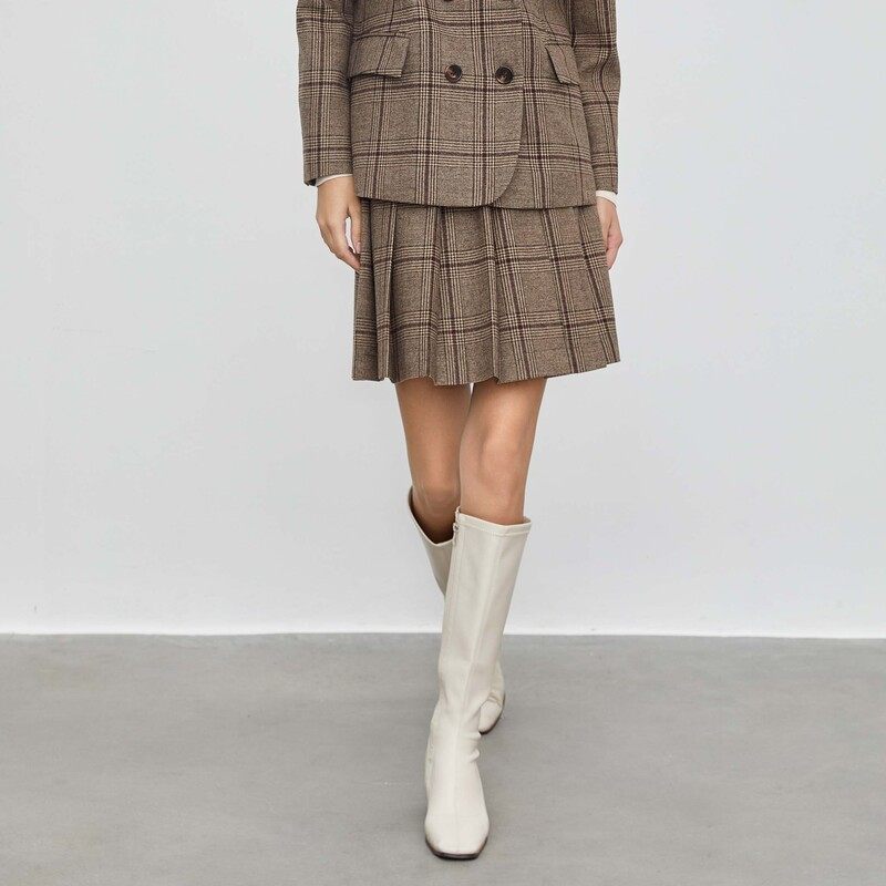 sdeer圣迪奥女装学院风套装格纹百褶毛呢短裙S23461304