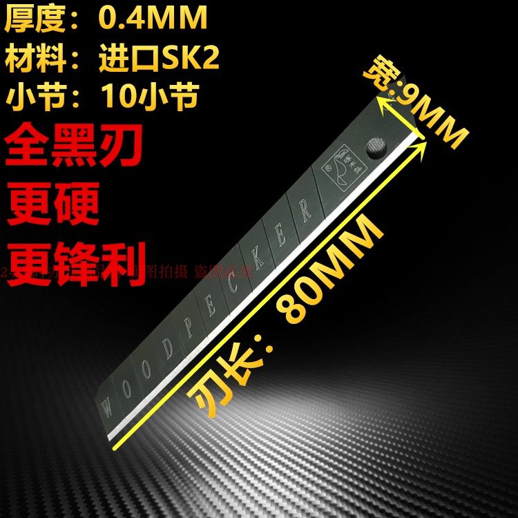 啄木鸟404B小美工刀片全黑刃9MM黑钢墙布壁纸裁纸介刀片100片包邮