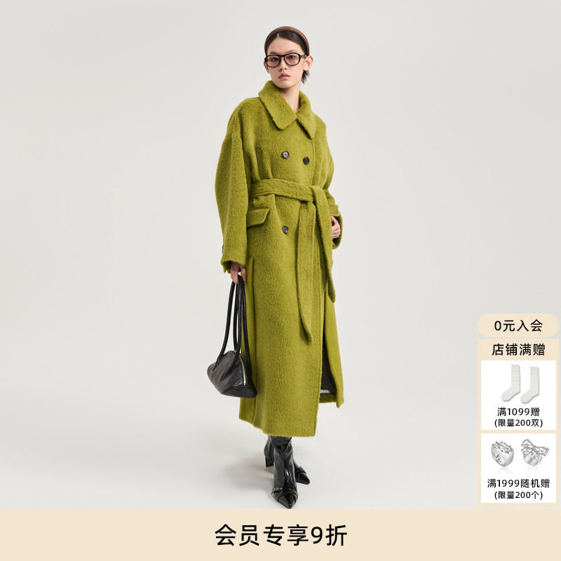 悦戎秘鲁进口苏力羊驼毛大衣女中长款2025秋冬皮草感羊毛呢外套