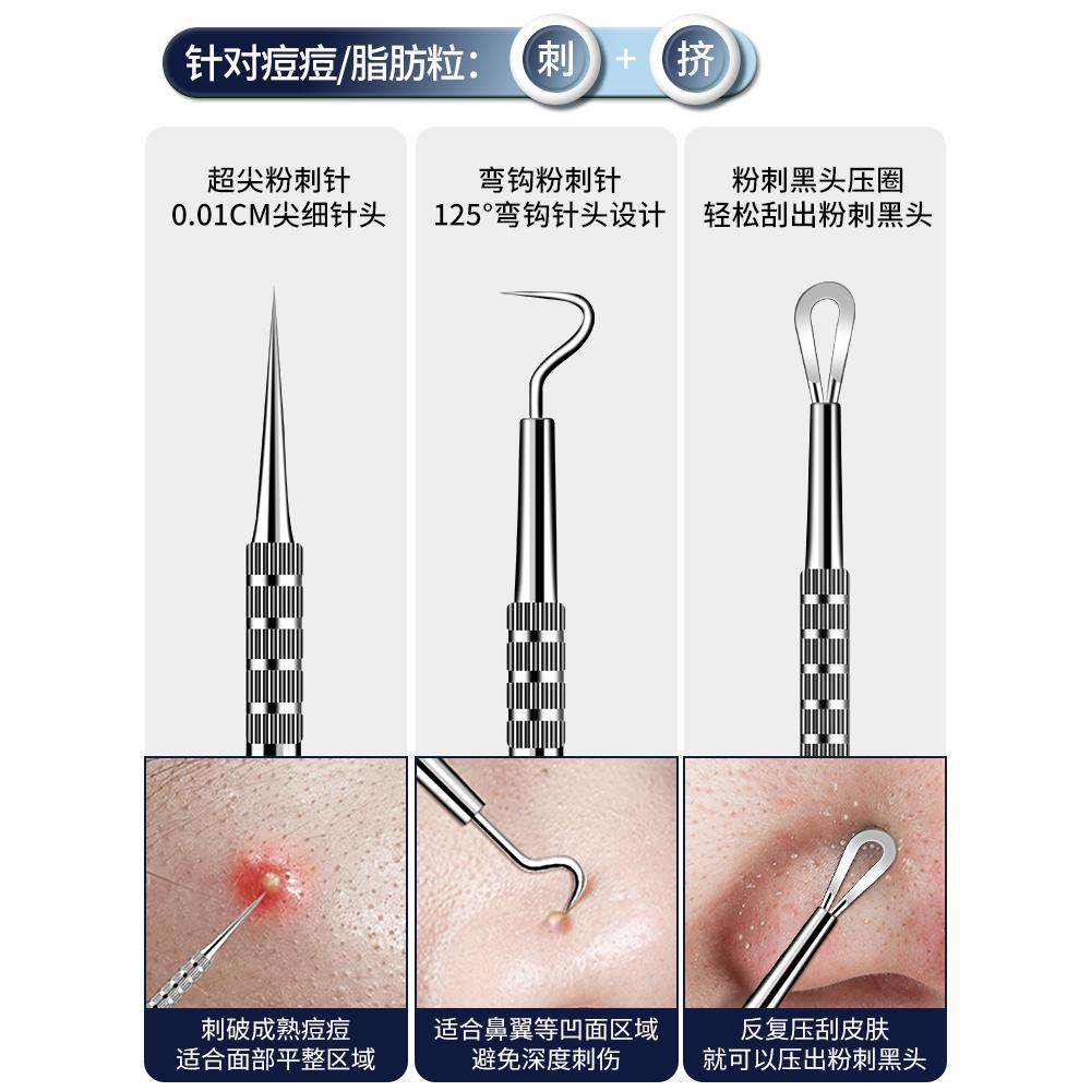 新款超细粉刺针套装细胞夹美容院专用去黑头镊子闭口清挤痘痘工具