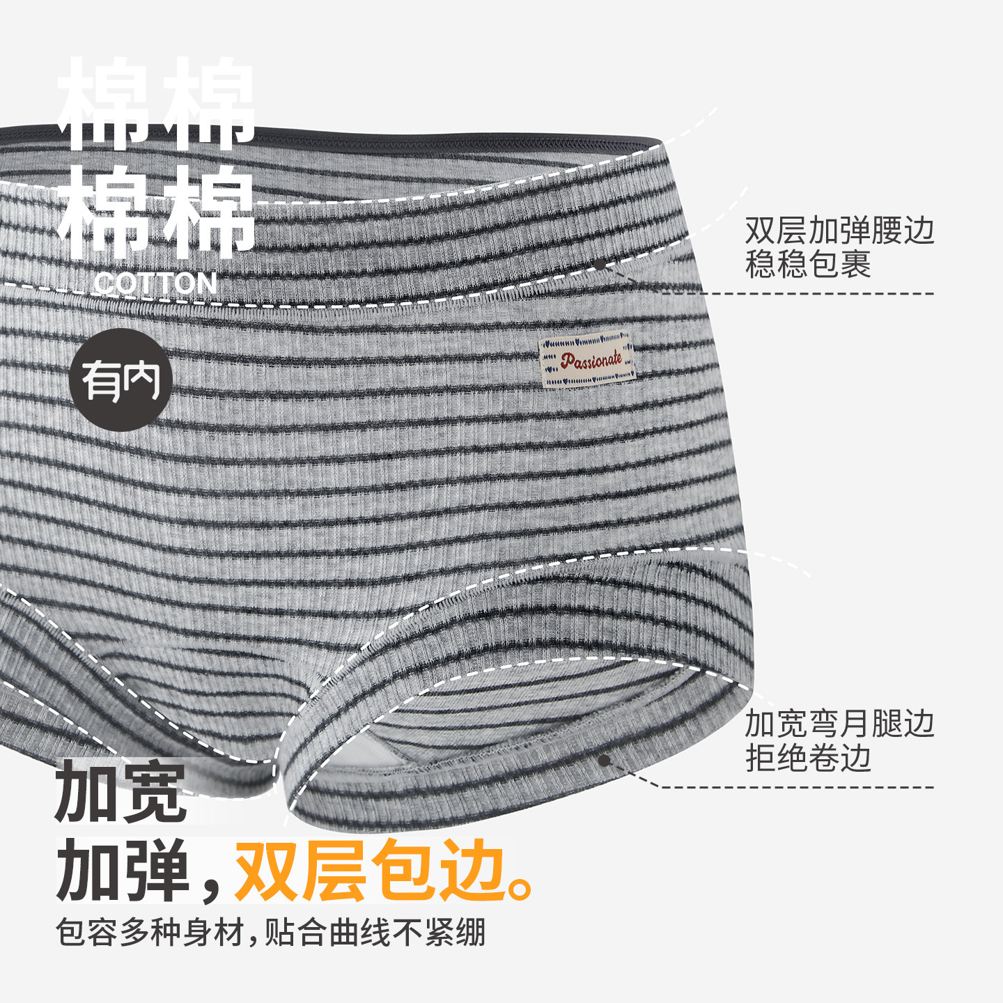 有内四角内裤女士纯棉100%全棉抗菌裆2026新款女生中腰平角条纹