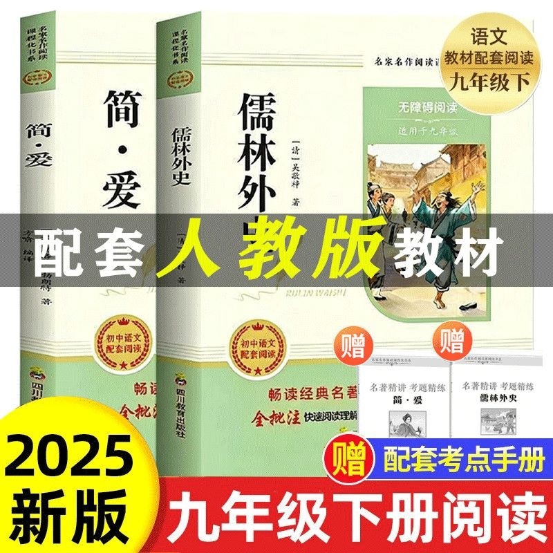 简爱和儒林外史九年级必读正版原著完整版配套人教版初三下册课外阅读书籍初中生九下的课外书名著语文书目水浒传经典小说文学精讲
