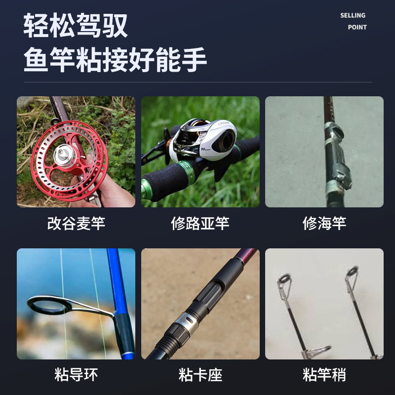 环氧树脂AB胶鱼竿胶水专用水手竿改装谷麦竿加固导环专用胶透明竿稍绳断裂修复材料路亚竿后堵黑色沾海竿