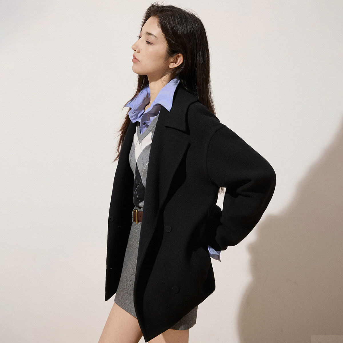 MPAM绵羊毛羊绒双面呢大衣时尚气质立领羊毛外套女