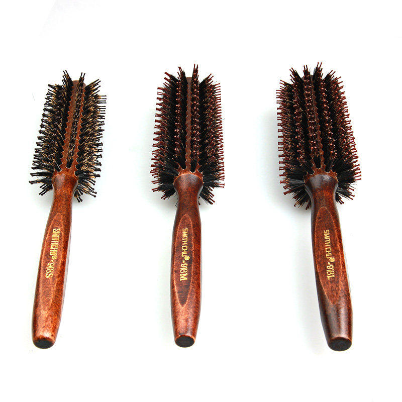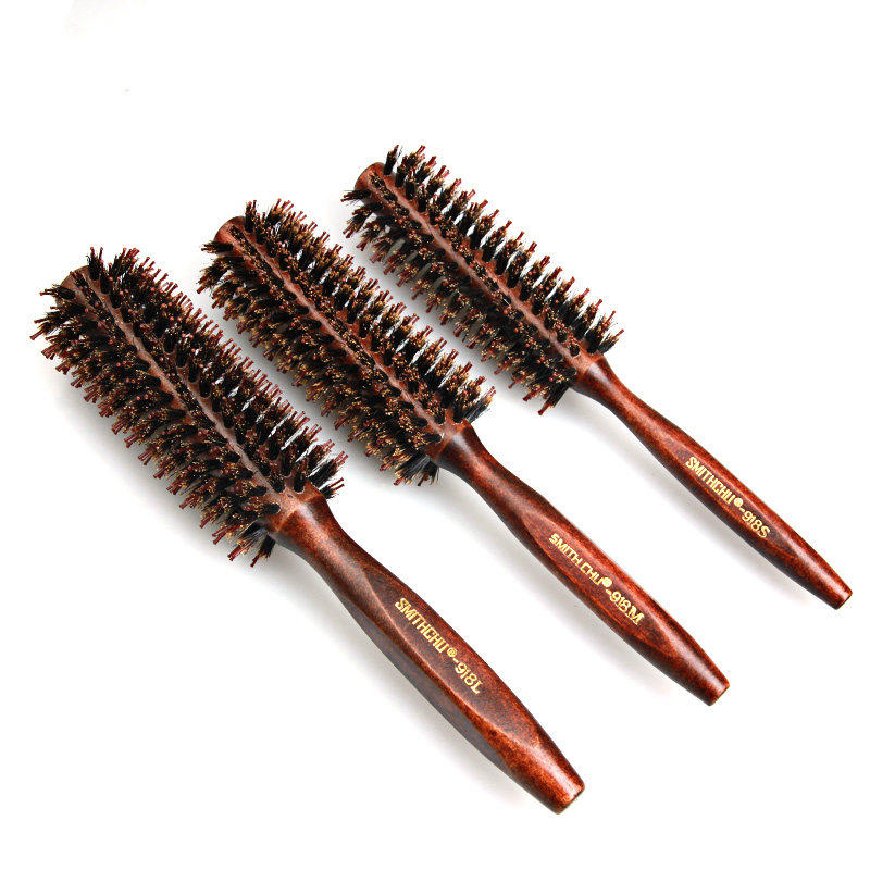 SMITHCHU猪鬃毛梳滚梳卷发实木梳子圆筒梳梨花波波头造型吹直梳子