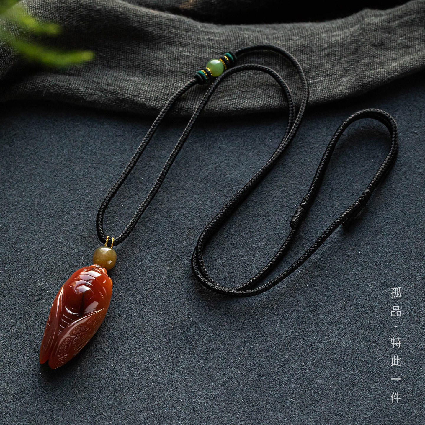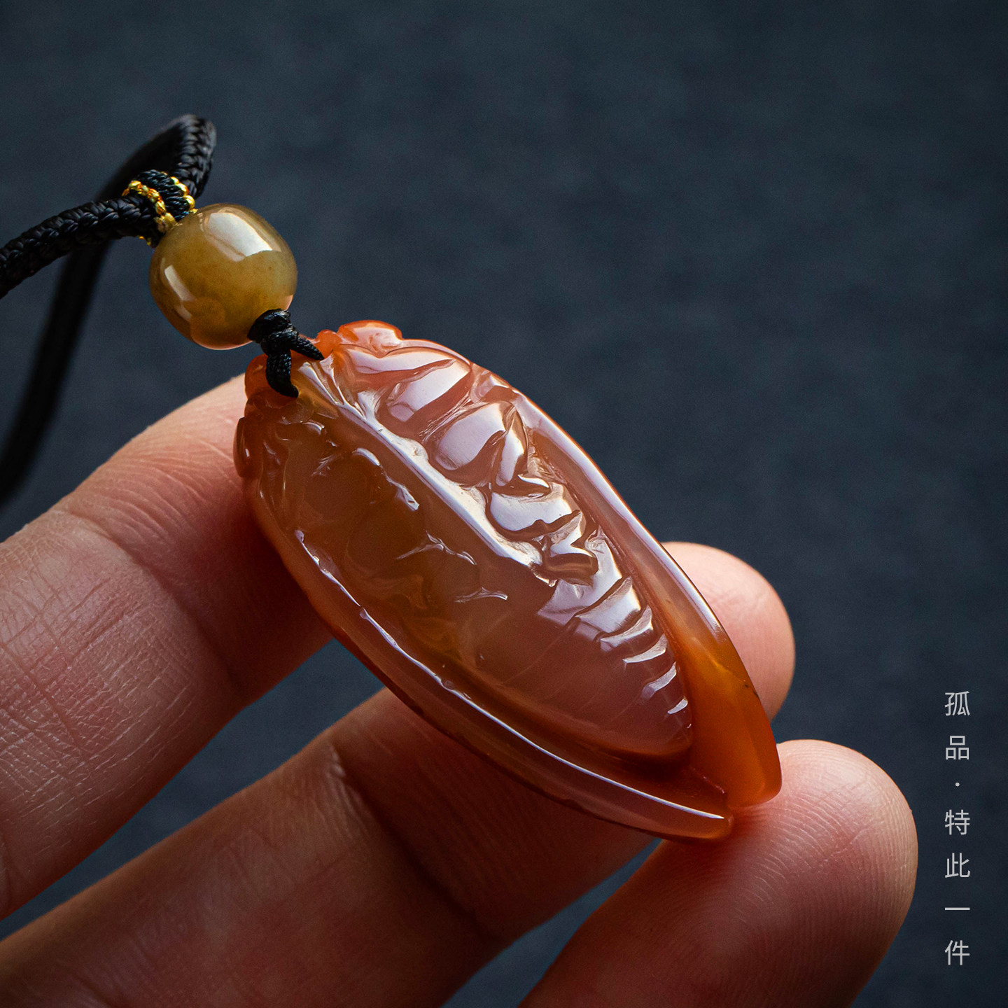 孤品【玛瑙·一鸣惊人】高品质玛瑙雕刻金蝉吊坠装饰品 一物一证