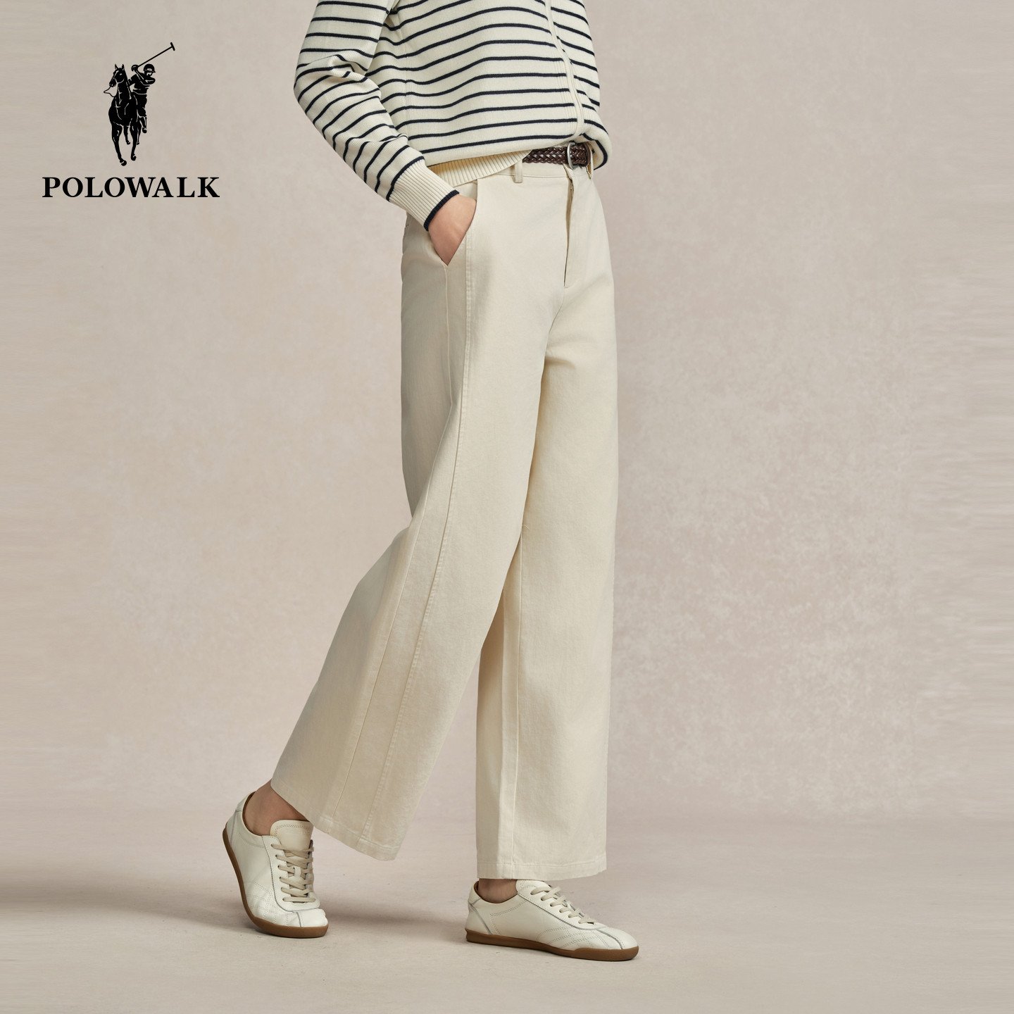 【100%棉】POLOWALK女式休闲裤2025秋冬裤新品经典百搭直筒休闲裤