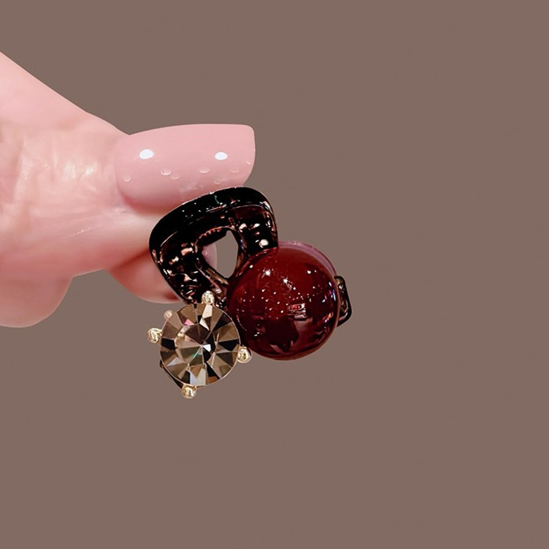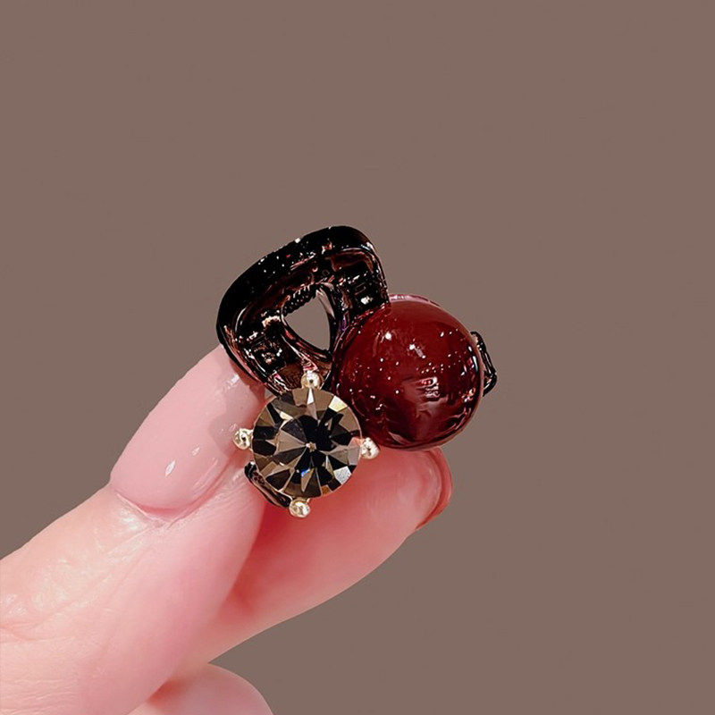 红色珍珠水钻发夹侧边精致小巧迷你小抓夹女刘海碎发夹小夹子头饰