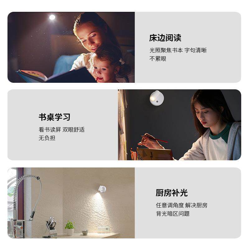 免布线充电壁灯无线磁吸射灯免接线打孔卧室床头阅读灯照画洗墙灯