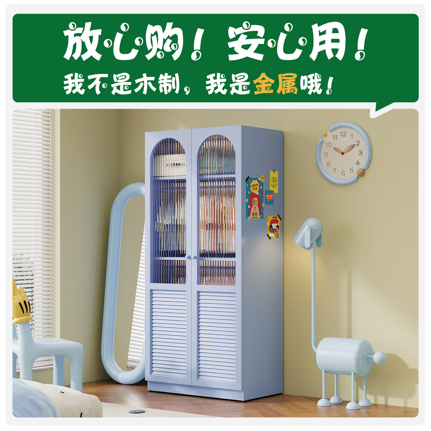 金属衣柜家用卧室新款加厚儿童衣橱钢制小户型大容量铁皮收纳柜子