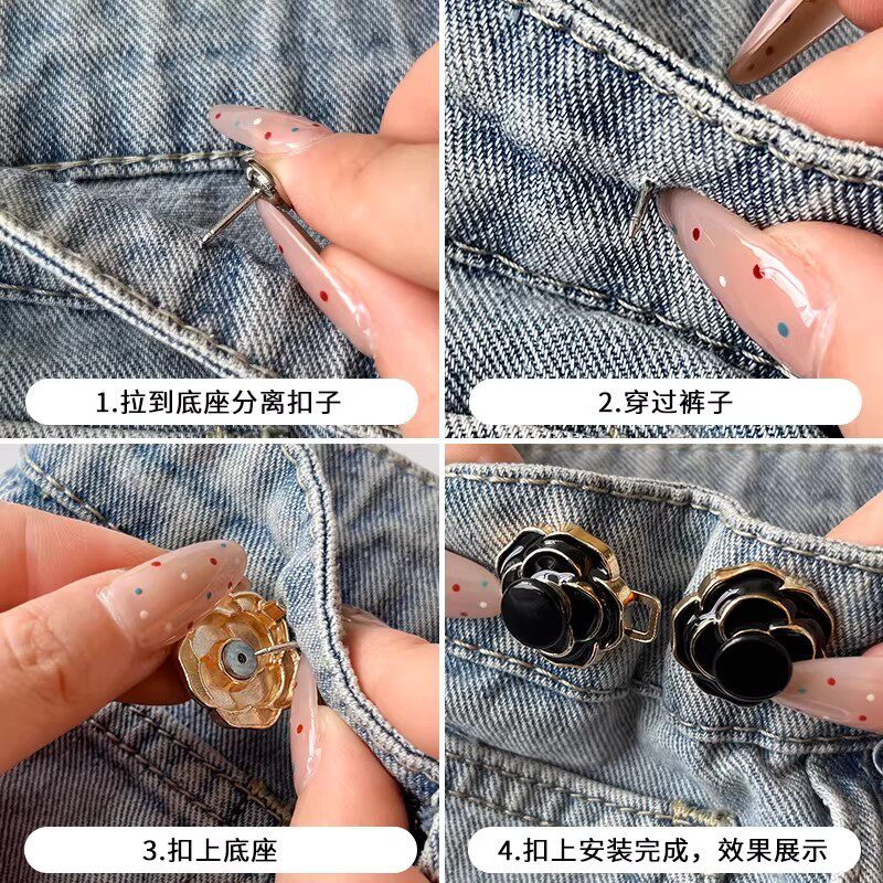 山茶花牛仔裤收紧神器胸针大了改小调节纽扣免缝可拆卸收腰扣免钉