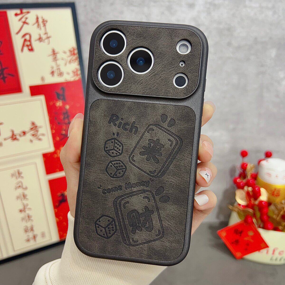 潮牌高级感Rich来财iPhone17promax手机壳16皮纹压印苹果15Promax防摔个性酷炫14保护套小众时尚13