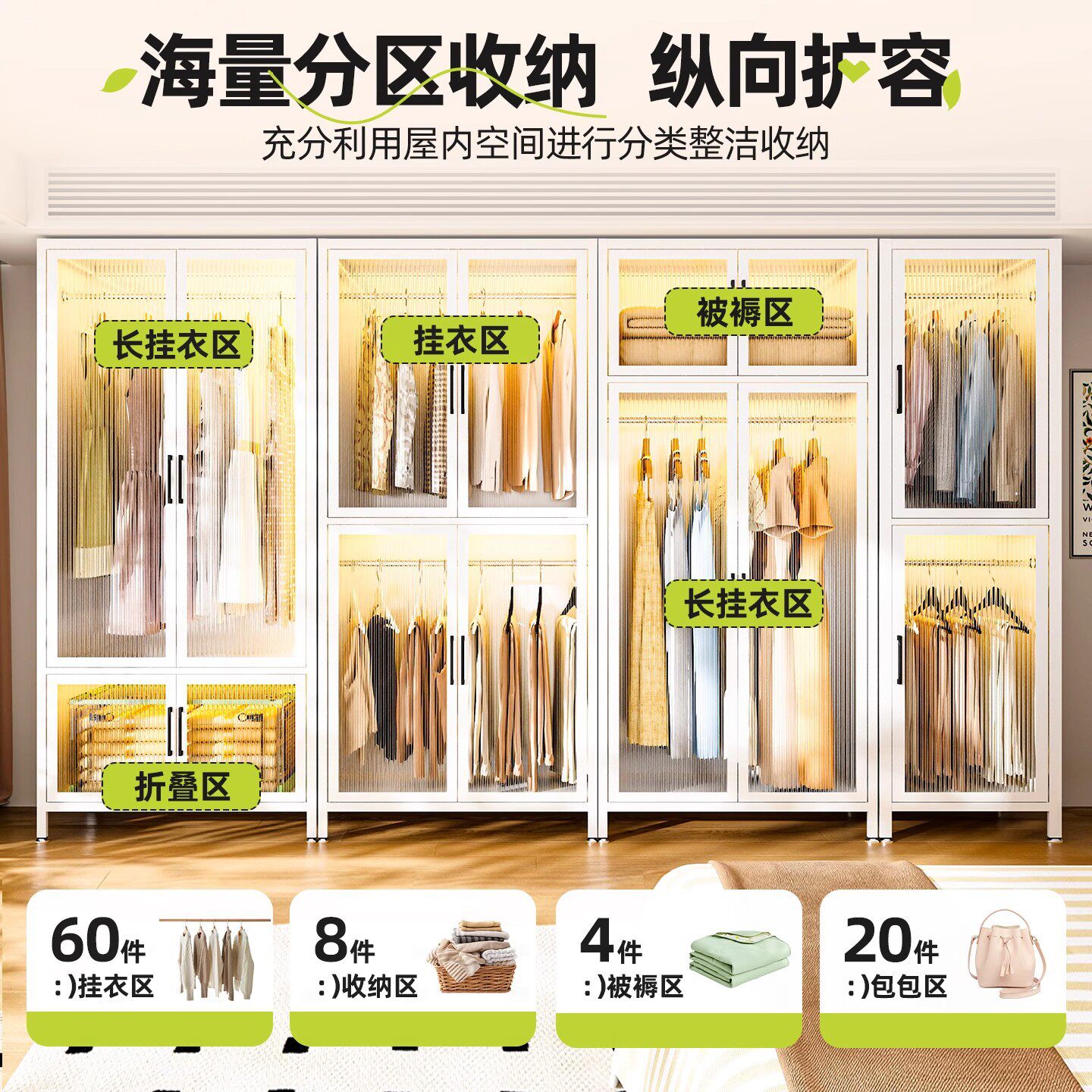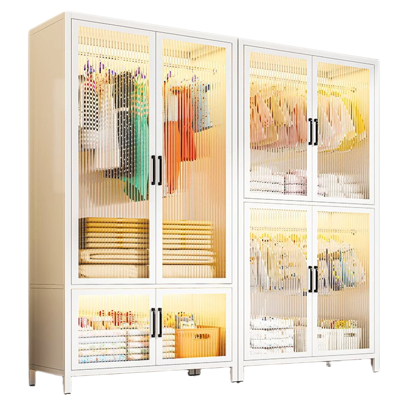 家用卧室衣柜储物柜钢制简易收纳柜儿童衣架落地宝宝衣橱置物柜子