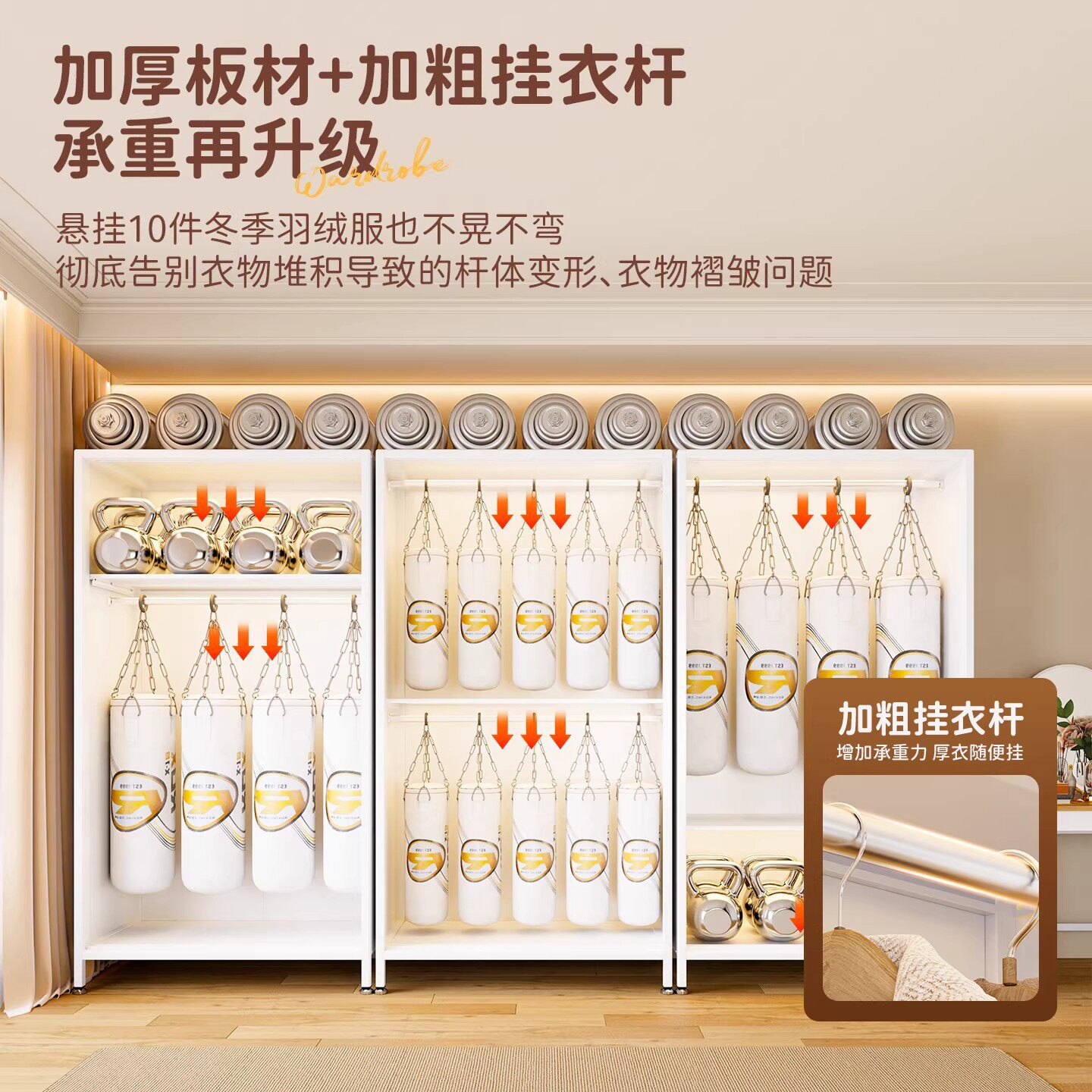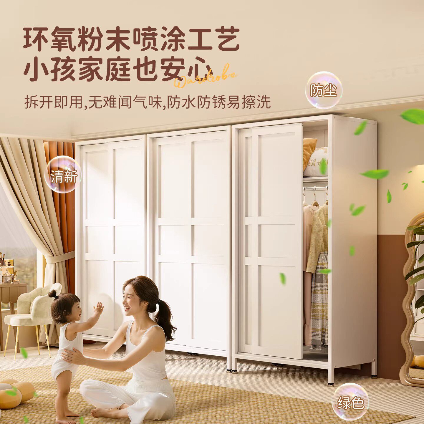 钢制推拉门衣柜卧室家用加厚铁艺收纳柜出租房用简易儿童宝宝衣橱