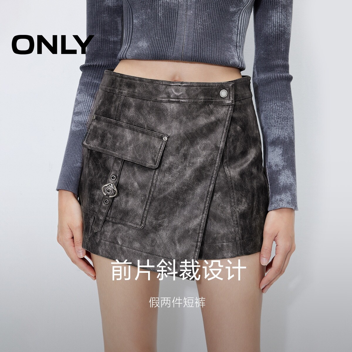 【ONLY奥莱】春夏新款潮酷高腰口袋PU假两件短裤休闲裤女