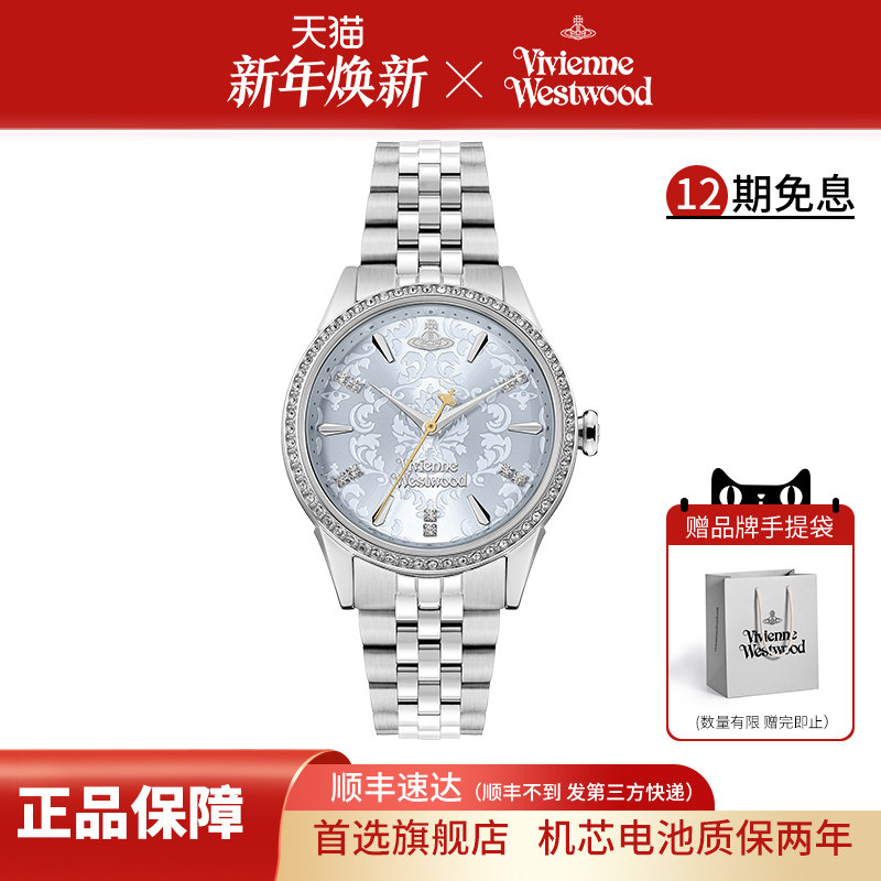 西太后手表女满钻新款女表浮雕表盘女士百搭显白气质优雅银色腕表