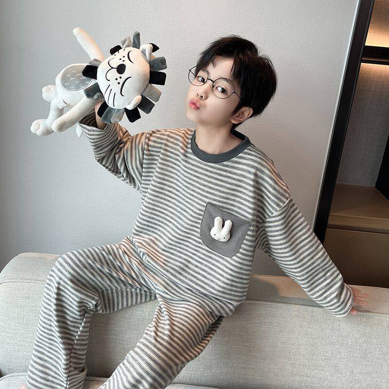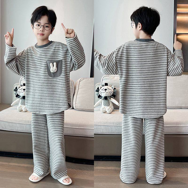 2025年儿童睡衣家居服时尚春秋新款翻领长袖女童男童套装大童空调