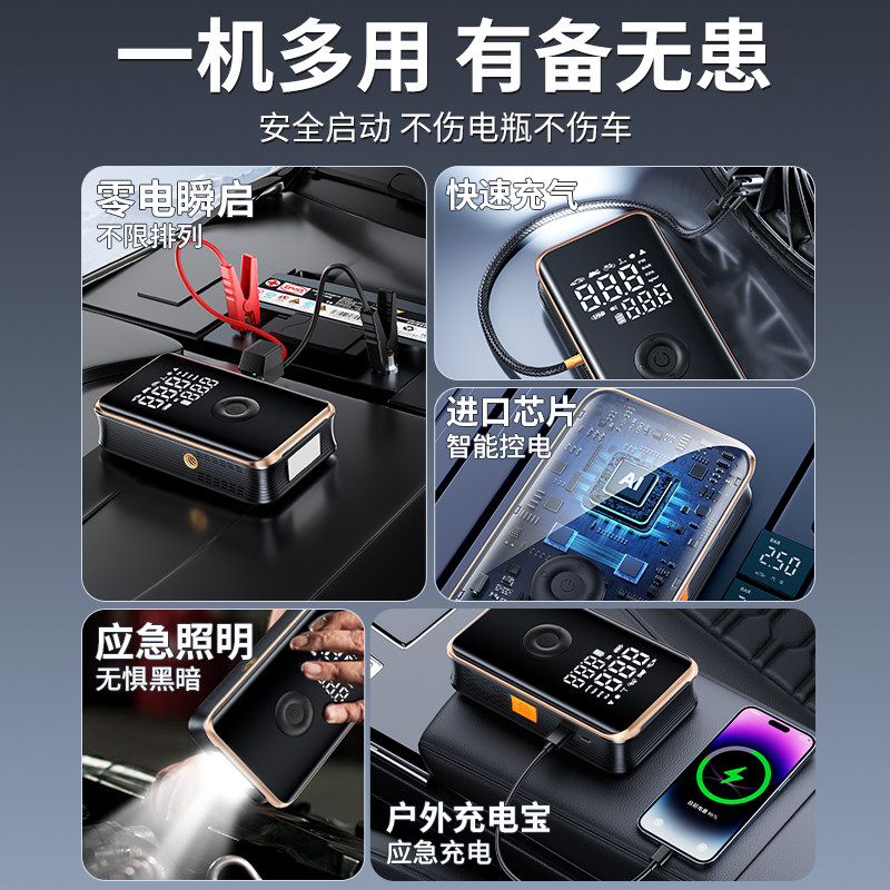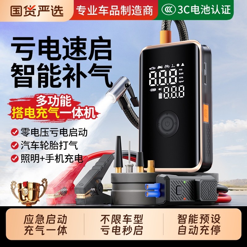 汽车应急启动电源车辆专用搭电宝车载充气泵一体电瓶紧急打火神器