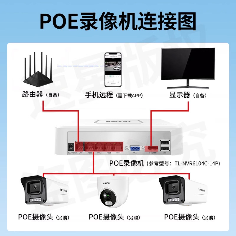 普联TP-LINK监控套装半球摄像头300/400万高清摄影头poe网线供电app控制家用商铺室内全彩夜视录像录音报警