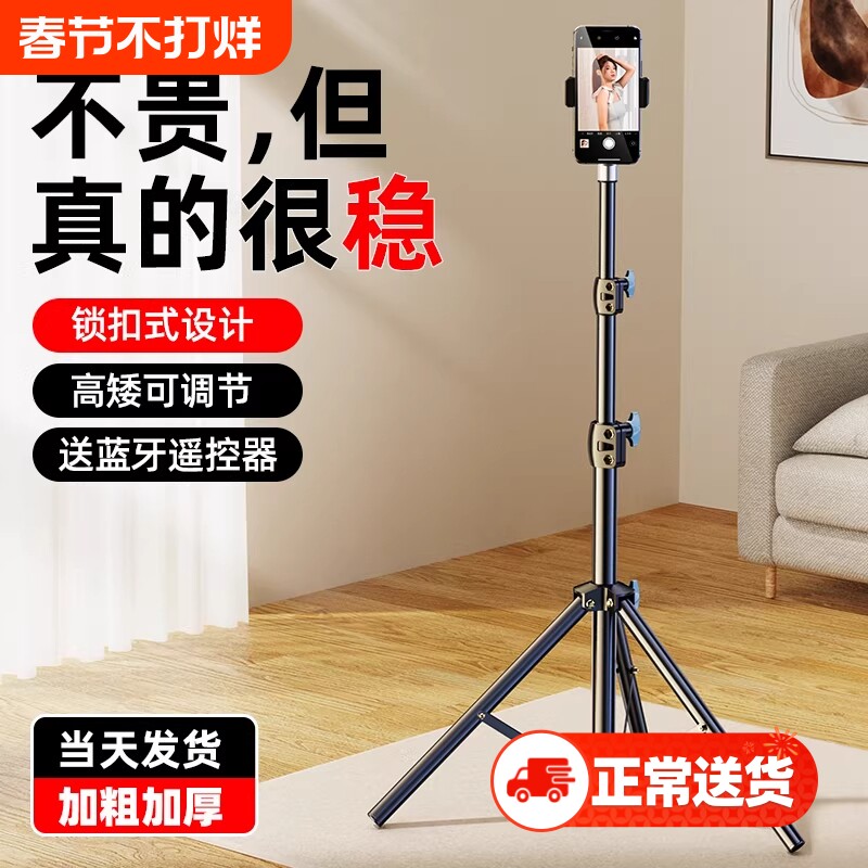 手机支架落地2025新款直播三脚架自拍杆便携补光灯拍照神器多功能拍视频全套设备户外落地式加粗加厚支撑架子