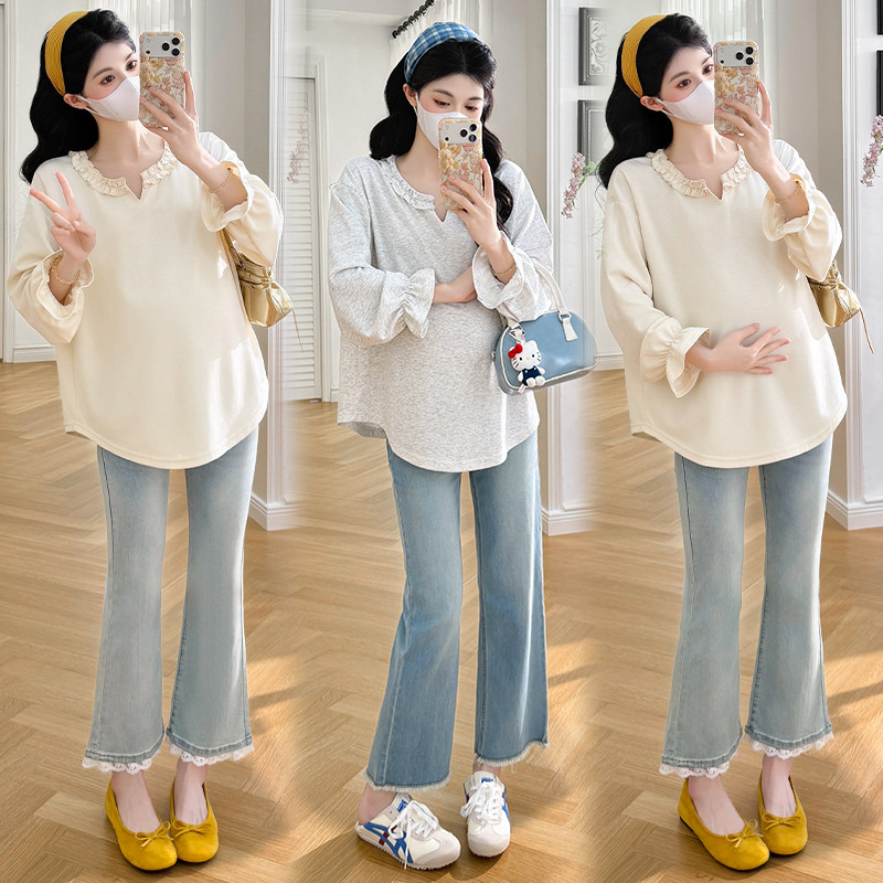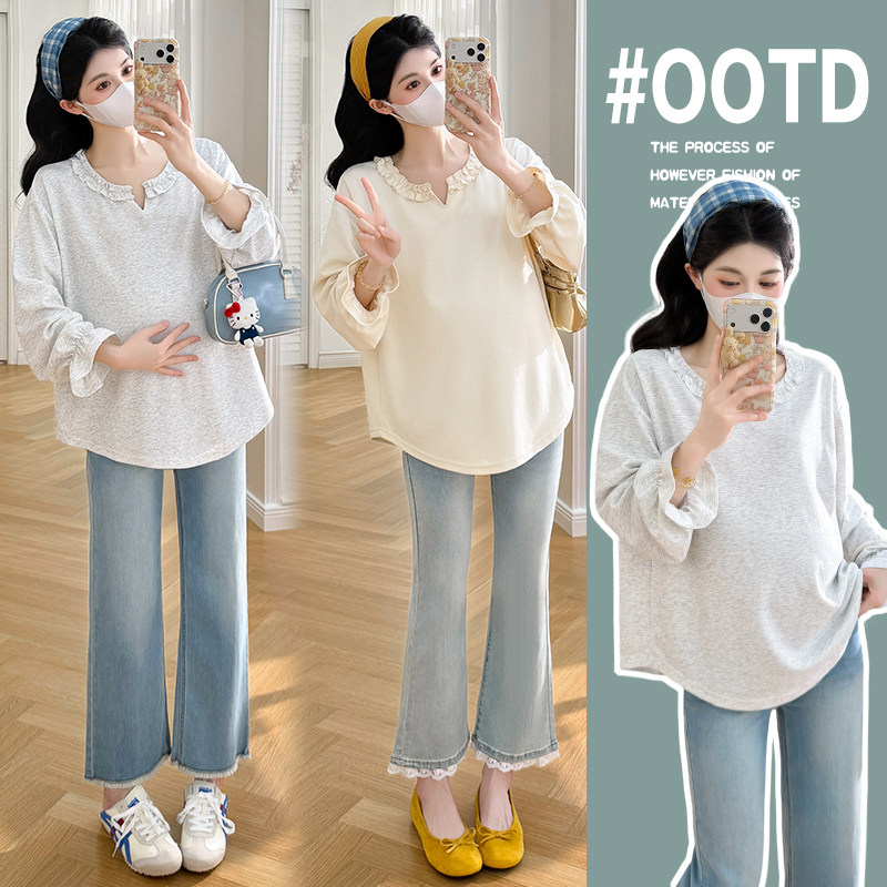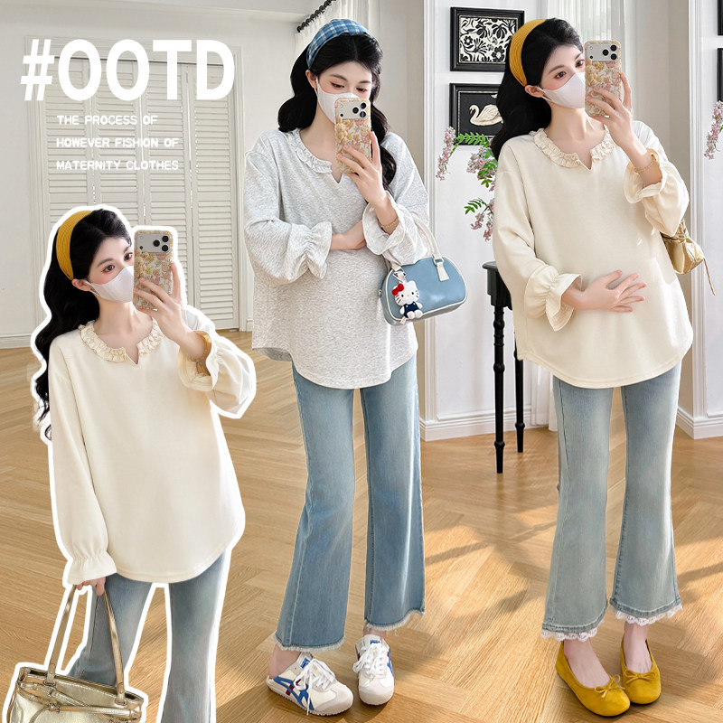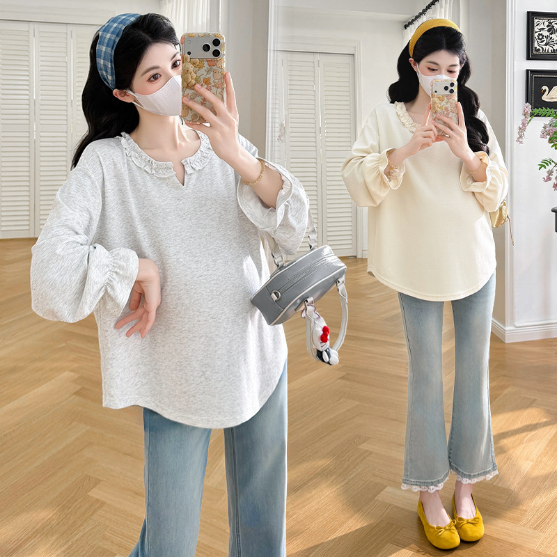 婧麒孕妇上衣2026早春新款V领显瘦宽松遮肚休闲孕晚期上衣孕妇装
