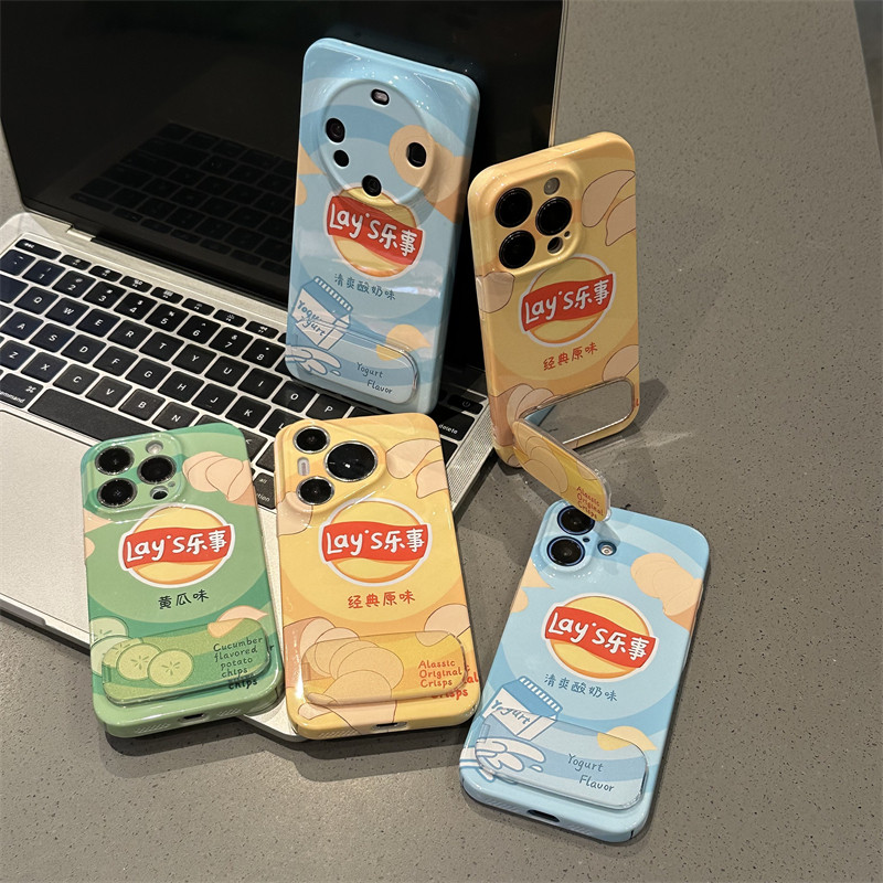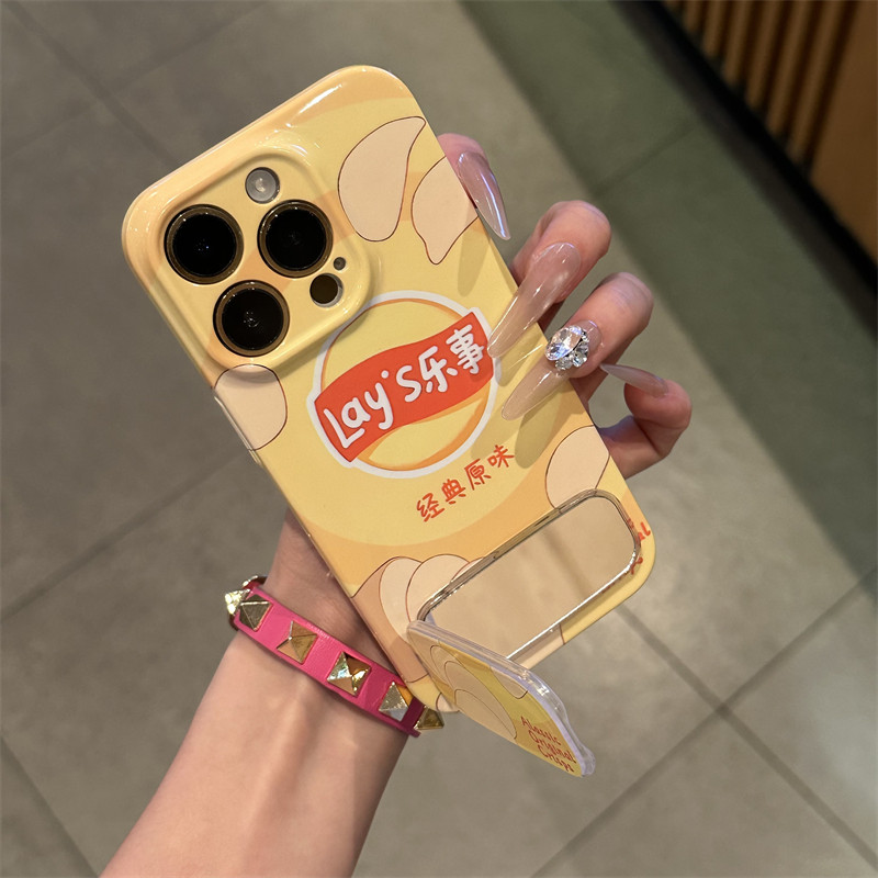 黄底原味薯片适用苹果15promax手机壳16pro华为mate60新款pura70菲林壳OPPOReno12/vivos19x100支架小米14套