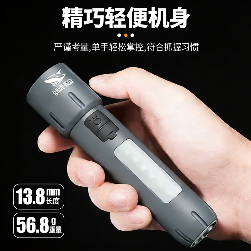 神鱼手电筒强光充电超亮小便携远射迷你户外多功能疝气家用灯LED