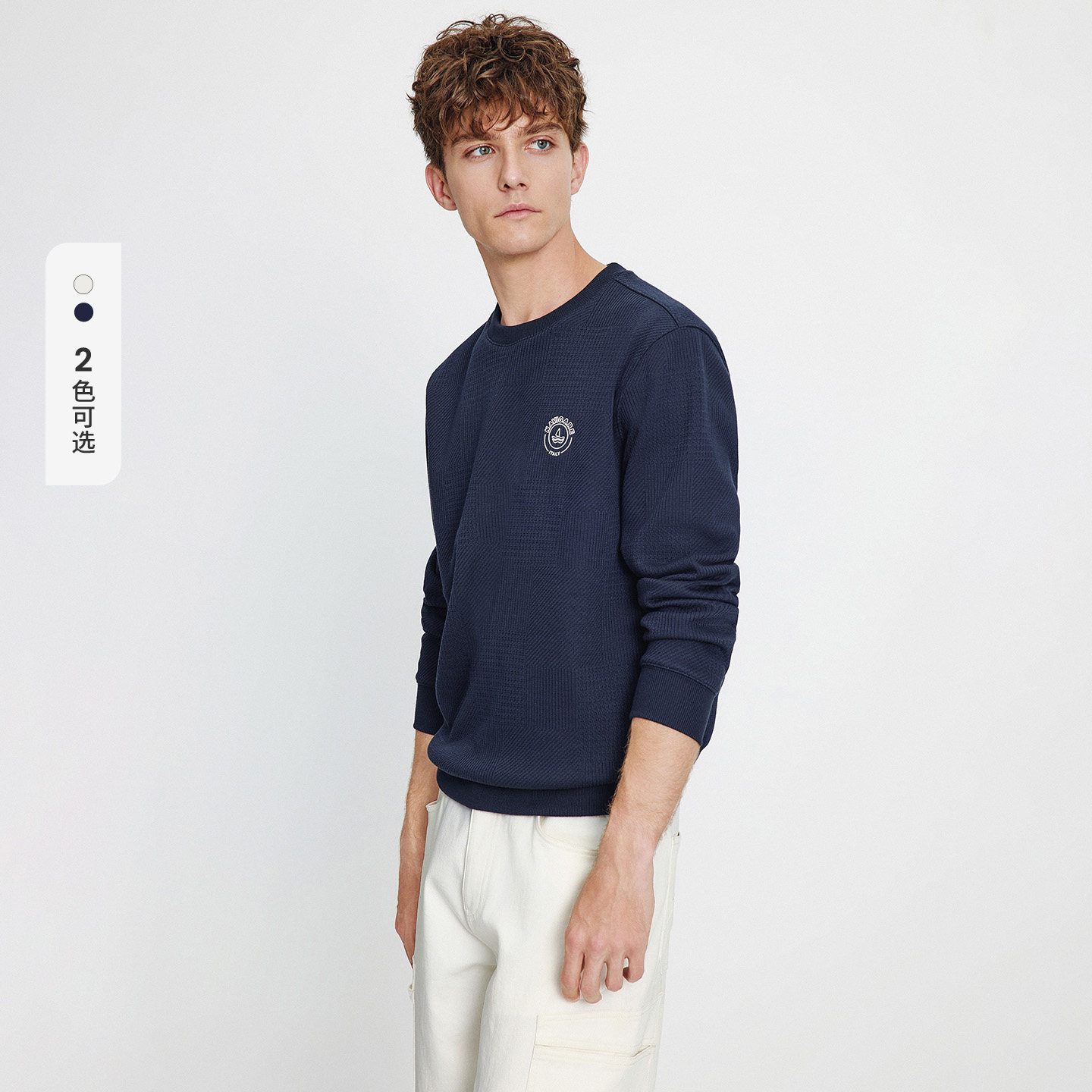 班尼路重磅卫衣男款秋季基础纯色圆领内搭男款宽松大码正肩套头衫