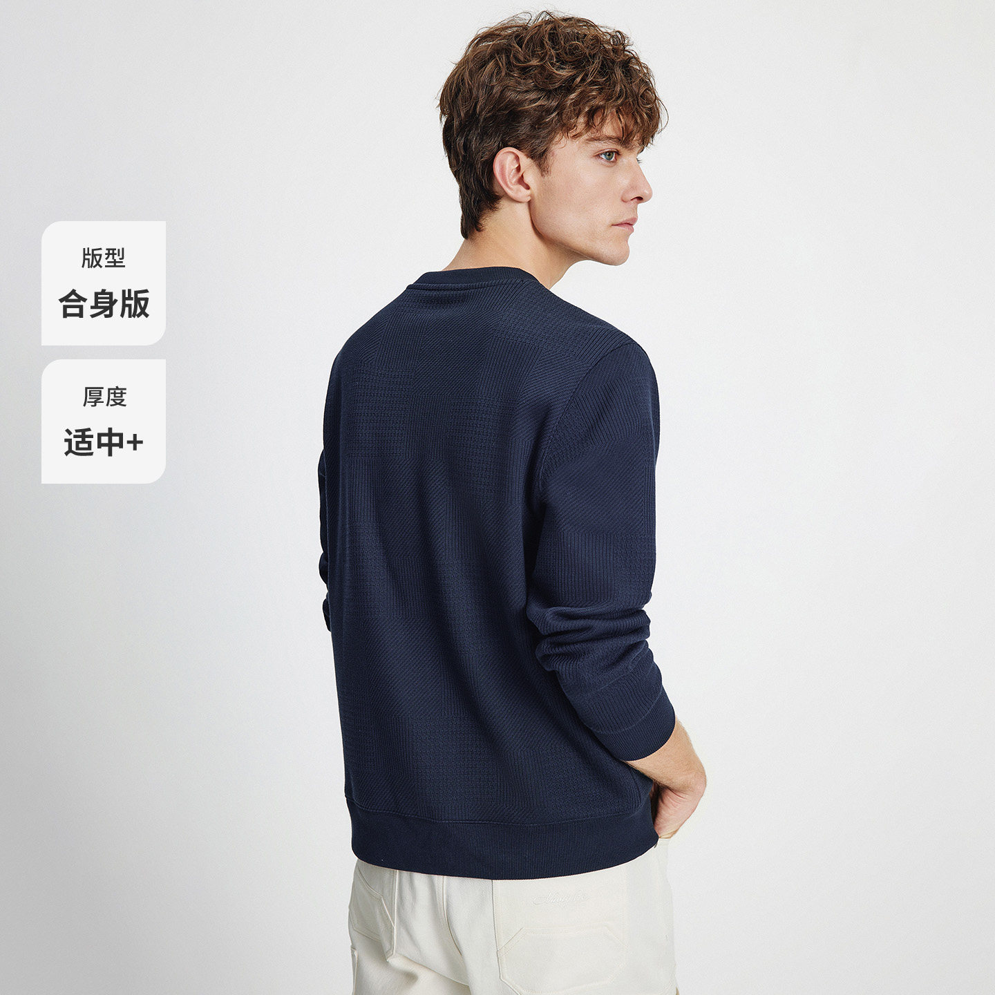 鸭鸭羊毛蚕丝华夫格圆领卫衣男女同款休闲华夫格圆领套头卫衣外套