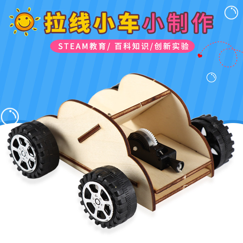 拉线小车小学生科技手工小制作发明发条弹性科学实验材料儿童玩具