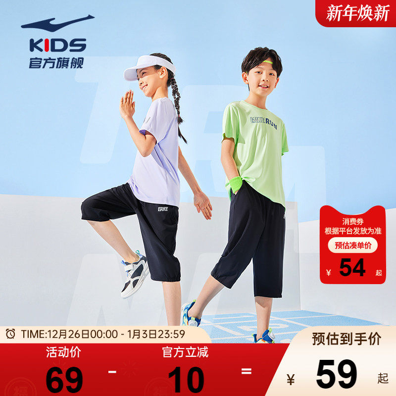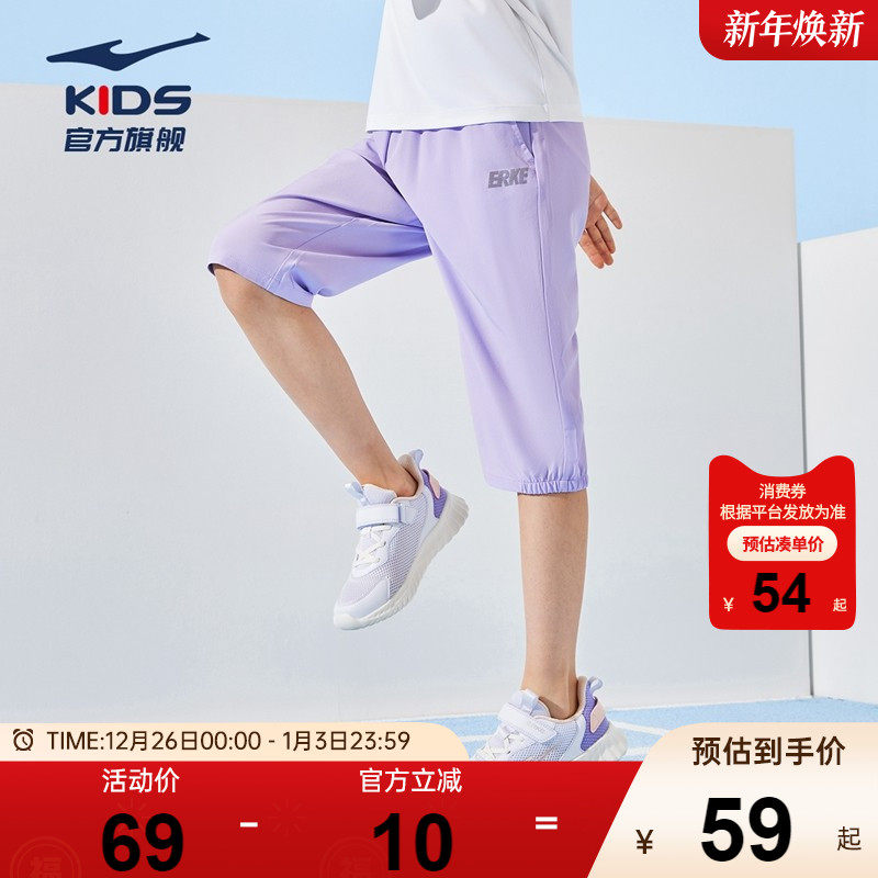鸿星尔克童装儿童短裤女童七分裤夏季新款速干轻薄款透气运动裤子