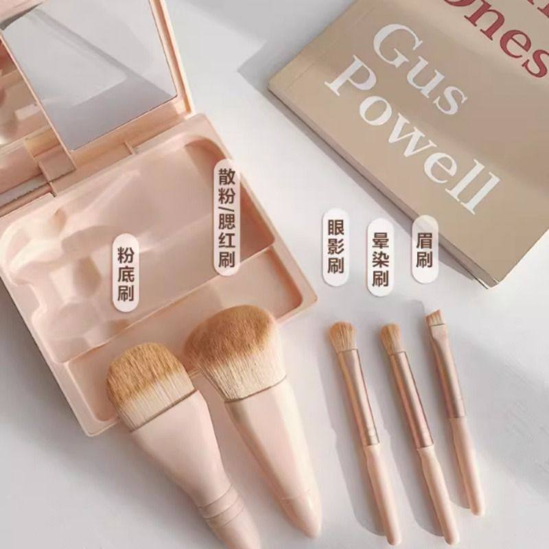 程十安推荐迷你便携化妆刷套装5支带镜子盒装旅行眼影散粉眉刷子