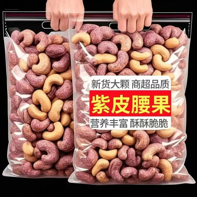 新货带皮大腰果仁500g原味盐焗紫皮腰果越南特产干果坚果孕妇零食