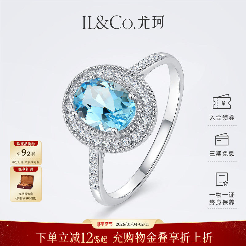 ILCO尤珂「冰蓝鸽子蛋」18K金海蓝宝戒指天然彩宝钻石克拉椭圆戒