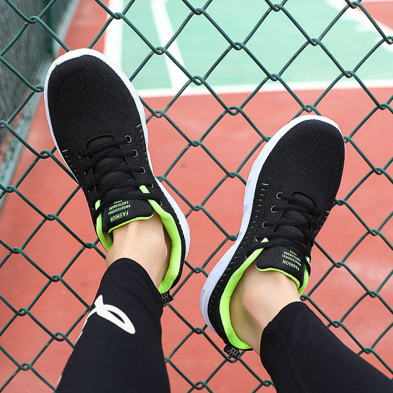 欧伦啄木鸟男鞋轻便防滑软底跑步鞋黑色网面减震运动鞋男士休闲鞋