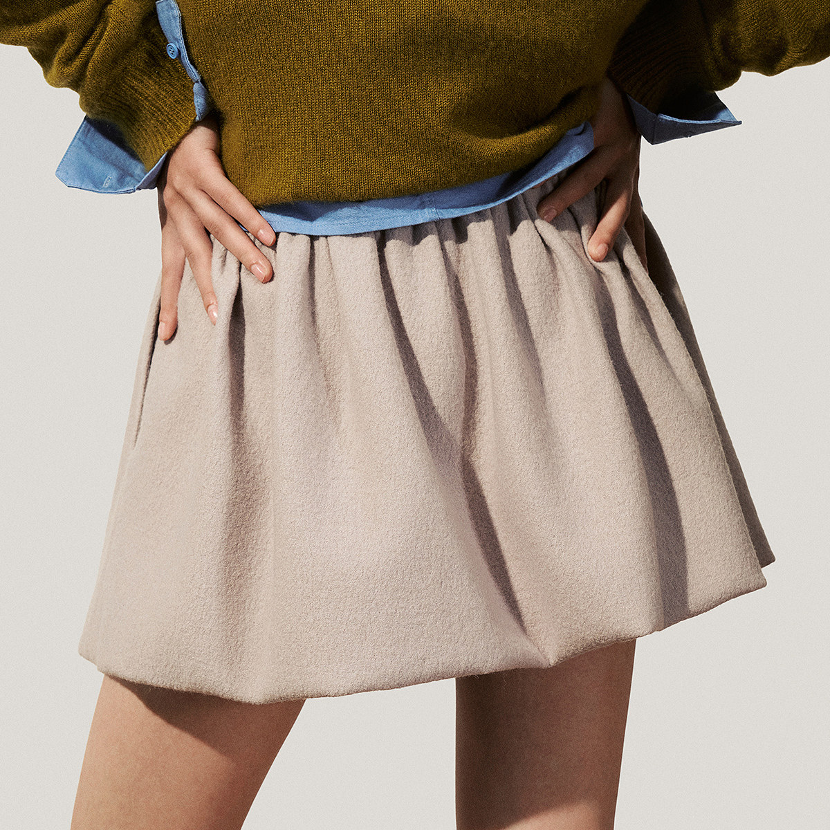 OCHIRLY欧时力 100%羊毛呢半身裙短裙松紧腰小个子春款