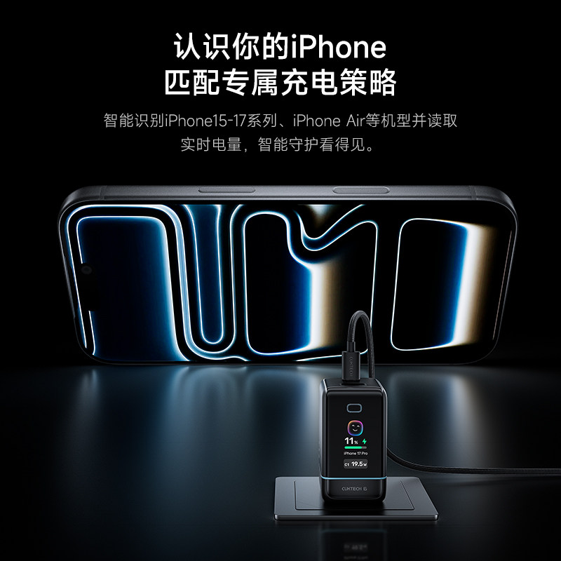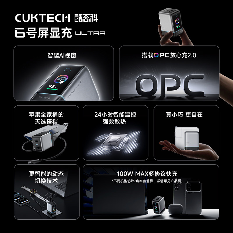 CUKTECH酷态科6号屏显充ultra氮化镓充电器iPhone17ProMax充电头适用于苹果小米华为手机100W笔记本PD三口65W