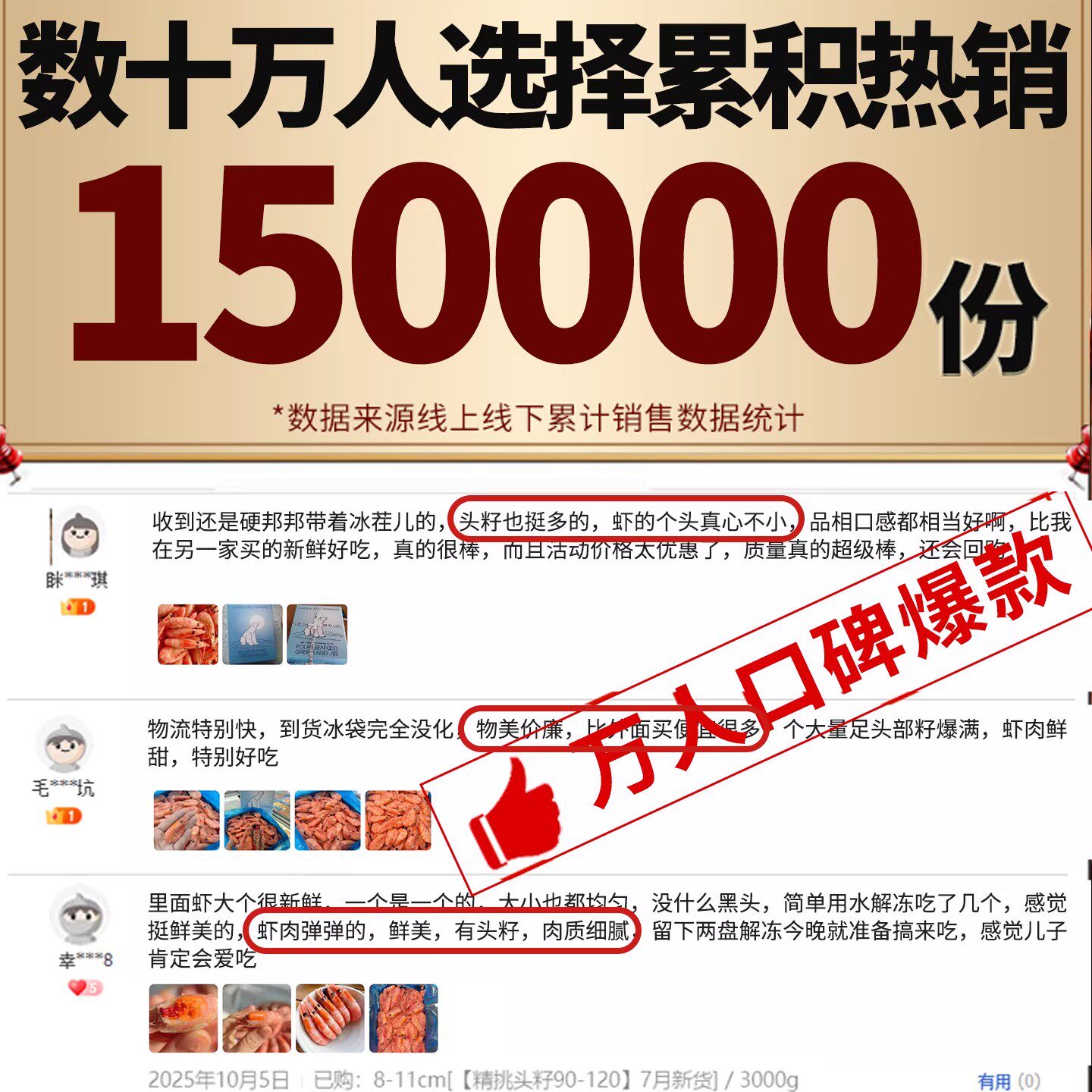 北极虾新鲜甜虾刺身冰虾大虾头籽腹籽北极熊海鲜水产鲜活即食速冻