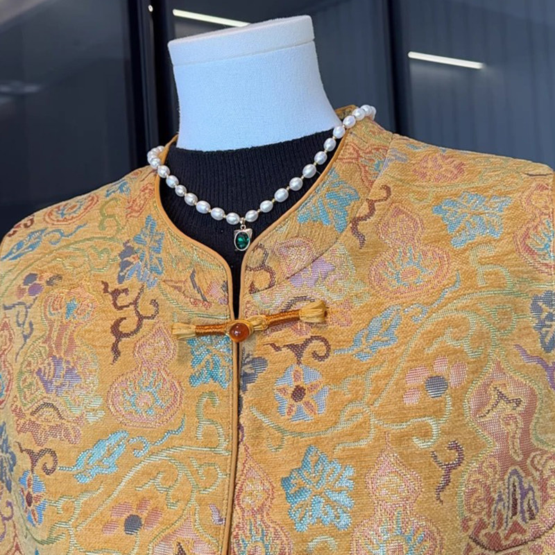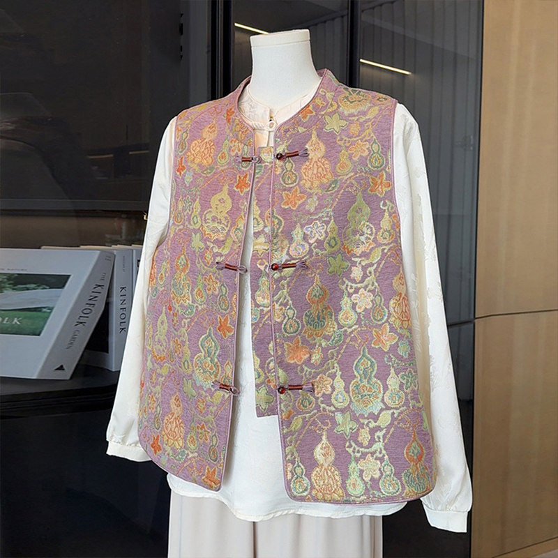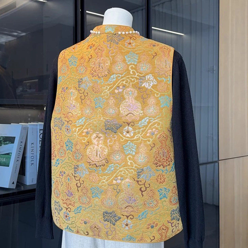 雅鹿新中式国风妈妈装马甲春装新款复古提花坎肩马夹上衣刺绣红色