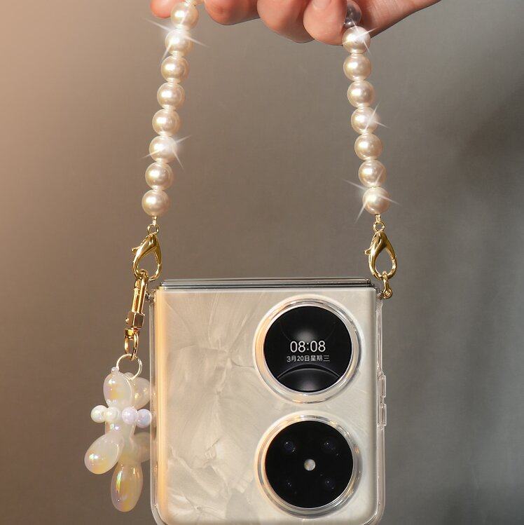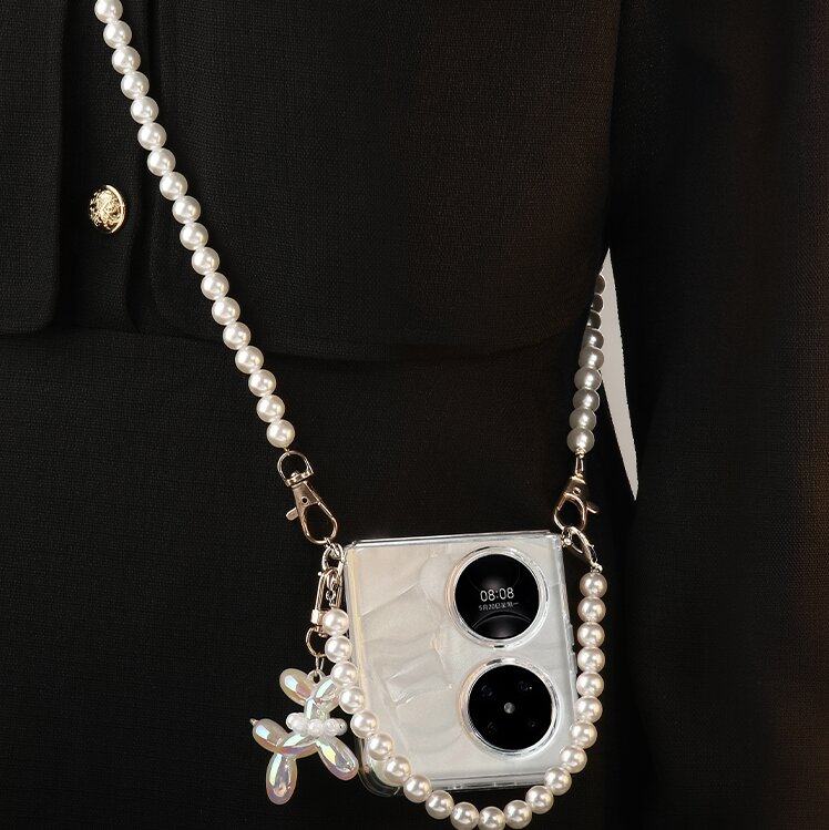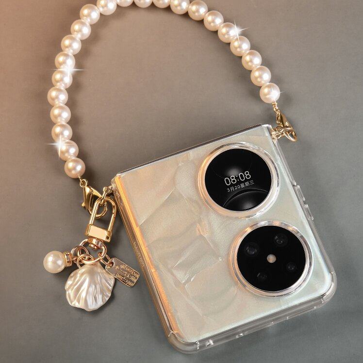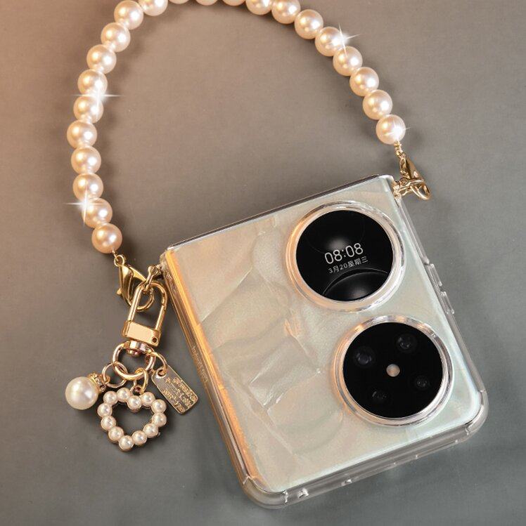 适用华为P50Pocket手机壳新款折叠pockte2保护壳p60透明超薄配饰防摔高级感珍珠软硅胶丝巾手提链条斜挎女款