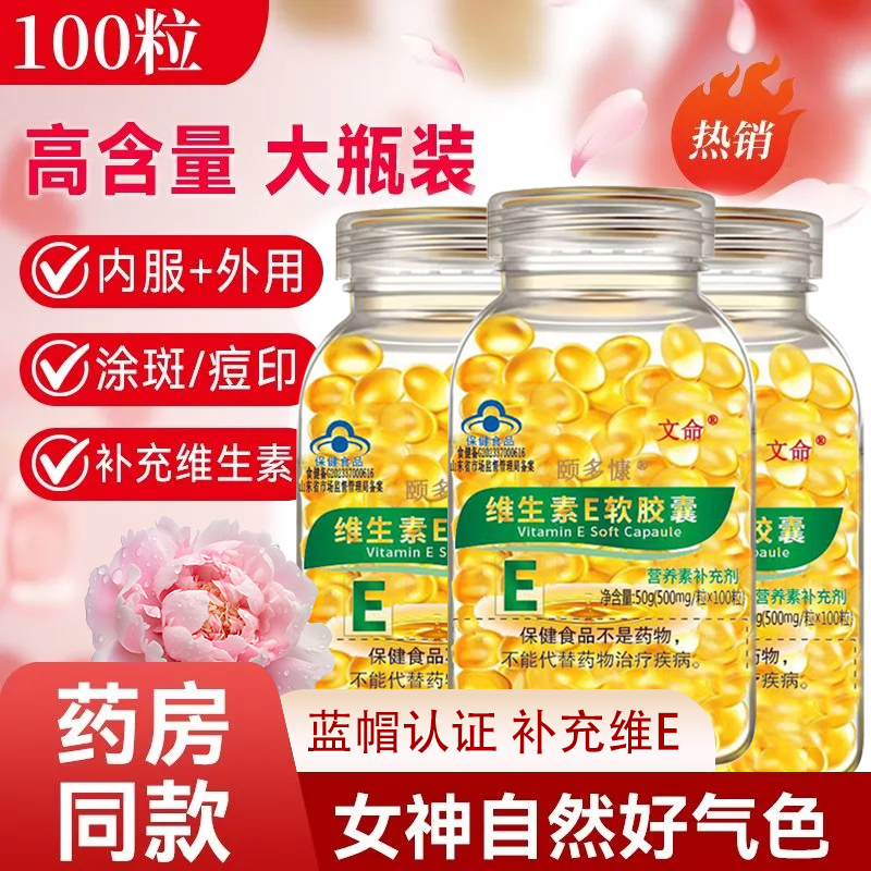 100粒官方正品维生素E软胶囊内服外用大颗粒护肤口服保健面部调理