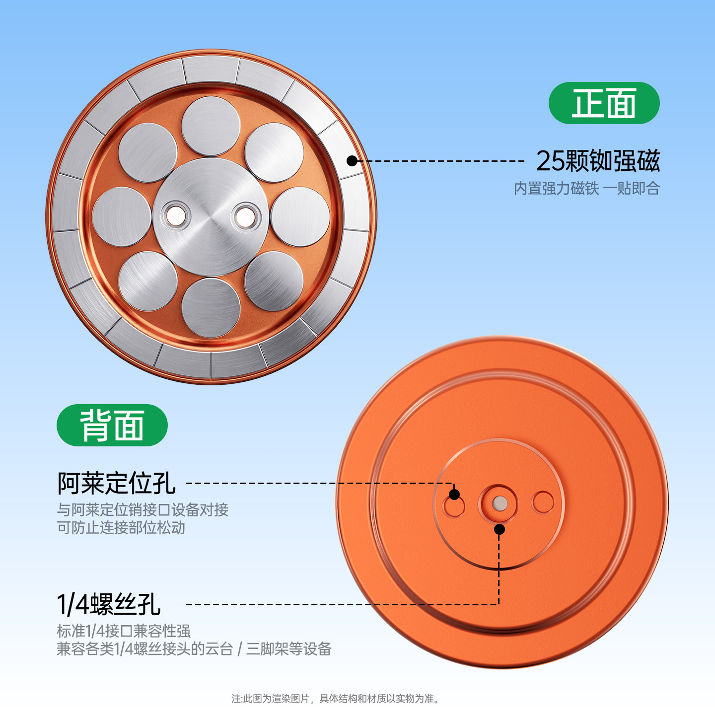 1/4螺丝孔阿莱定位孔底座磁吸头magsafe强磁铁手机支架三脚架相机架拍摄4/1通用多功能铝合金云台转接头配件